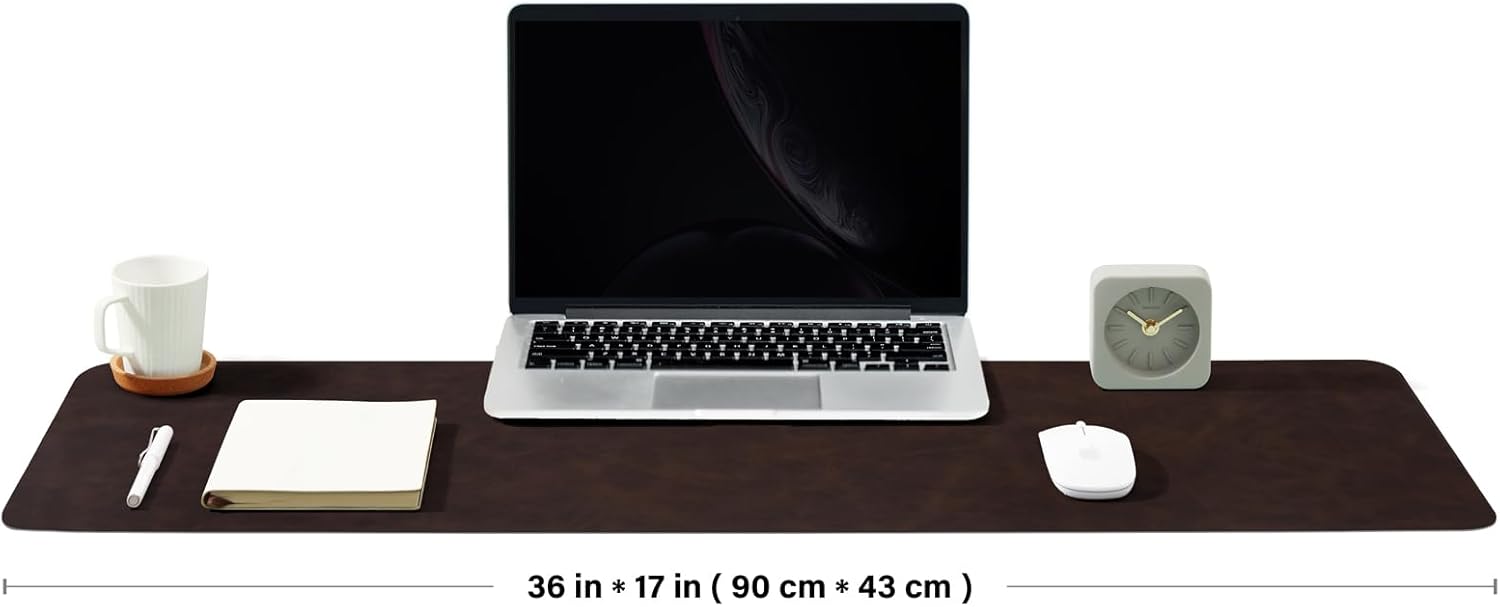 Distressed Leather Desk Mat - Non-Slip PU Desk Pad for Office and Home - Desk Organization and Accessories - Ideal for Large Mouse Pad and Desk Mats on Top of Desks(Espresso,36"x 17")