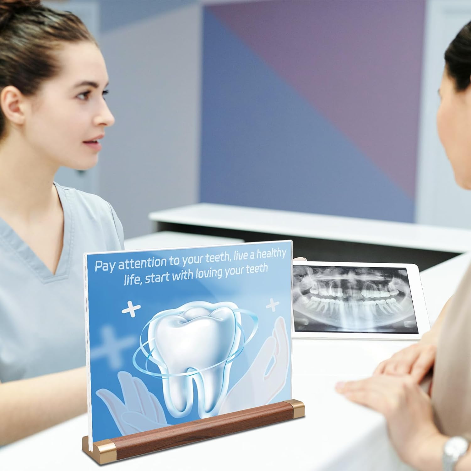 Acrylic Sign Holder 8.5 x 11 with Wood Color Base, 3 Pack Clear Tabletop Double-Sided T Shape Display Sign Frame Horizontal for Store/Coffee Shop/Office/Hotel Business Display Holder