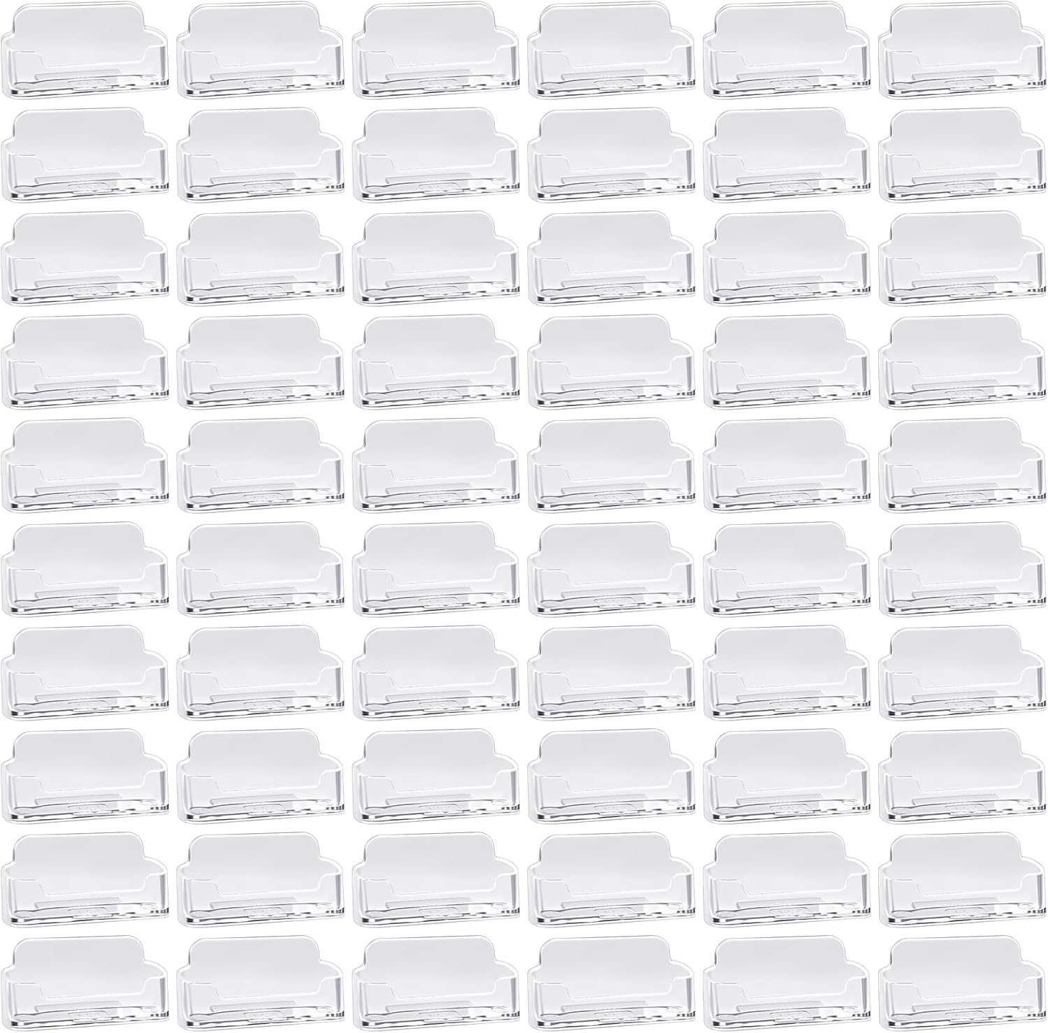 60 Packs Clear Acrylic Business Card Holder Bulk, Clear Card Stand Label Display Table Desktop Organizer for Exhibition Office(Fits 30-50 Cards)