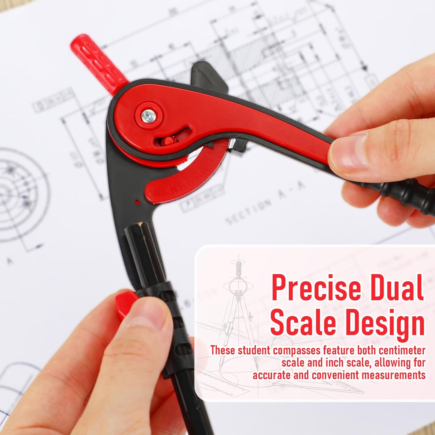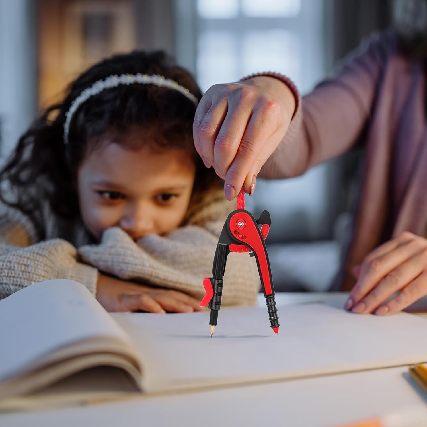 - Integrated compass package: compass with a box, contain 1 piece geometry compass, 1 box refill packaged in a transparent box, convenient for organized and carry