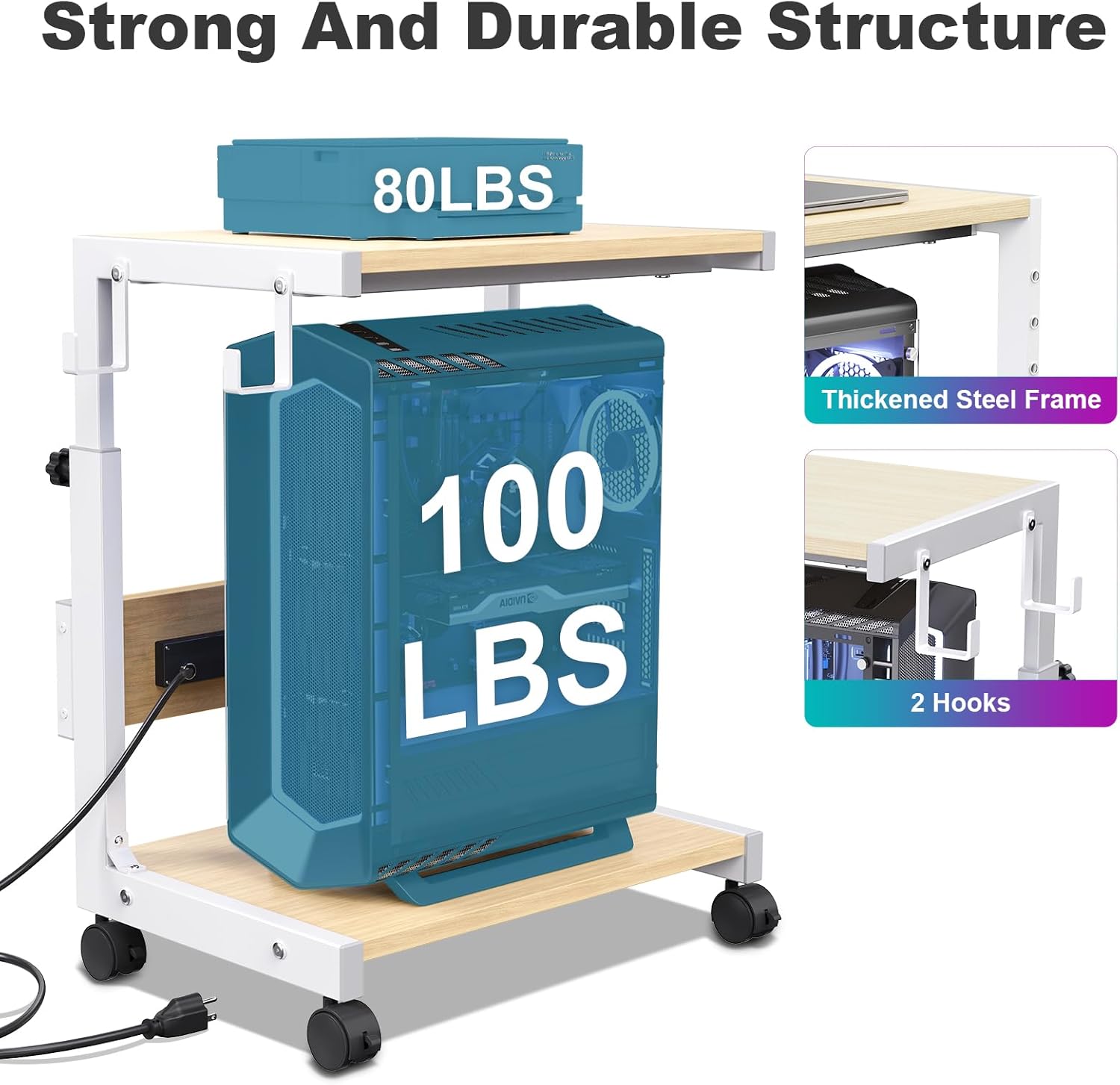 - Strong Construction: The top of this computer tower stand is made of thickened wood, which is scratch-resistant and moisture-proof. The main frame is made of thickened steel, which improves overall load-bearing capacity and stability, with a load-bearing capacity of up to 80 pounds. This product is highly stable, does not shake, and is not easily damaged or deformed