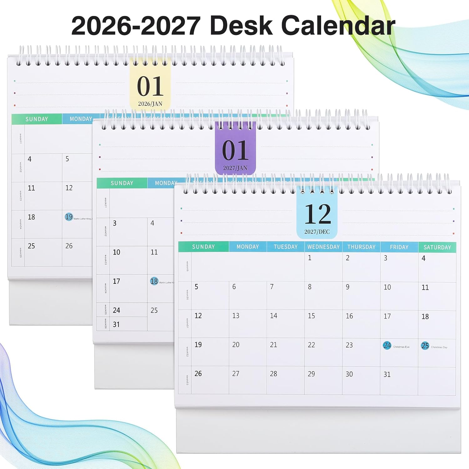 - 2026-2027 Planing Calendar – Stay organized all year with this 24-month desktop calendar featuring clear monthly overviews and spacious weekly grids. Perfect for tracking appointments, deadlines, and important events at a glance