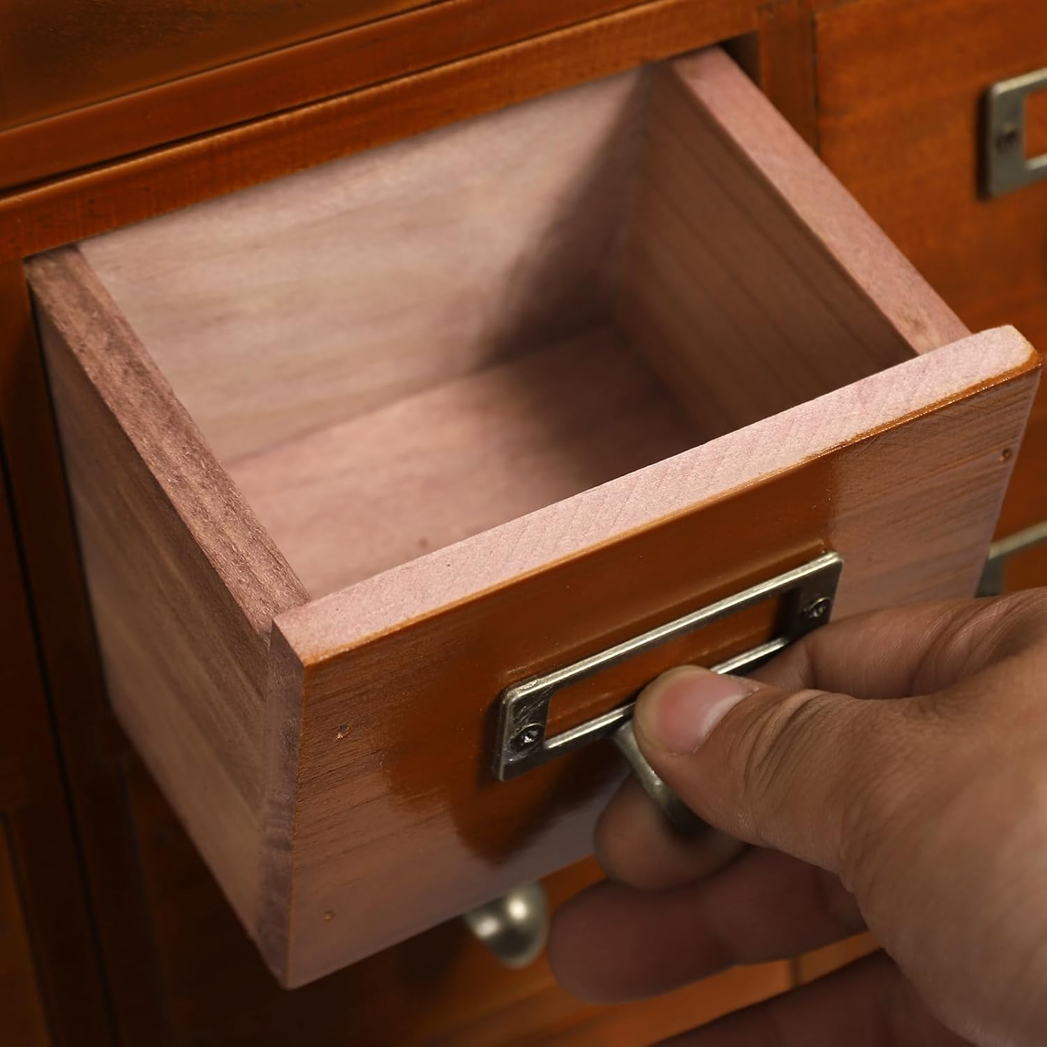64-Drawer Wood Desk Drawer Organizer, Vintage Tabletop Apothecary Cabinet Wooden Desk Organizer, Card Catalog Cabinet for Dresser, Kitchen, Office Organization and Storage (Brown)