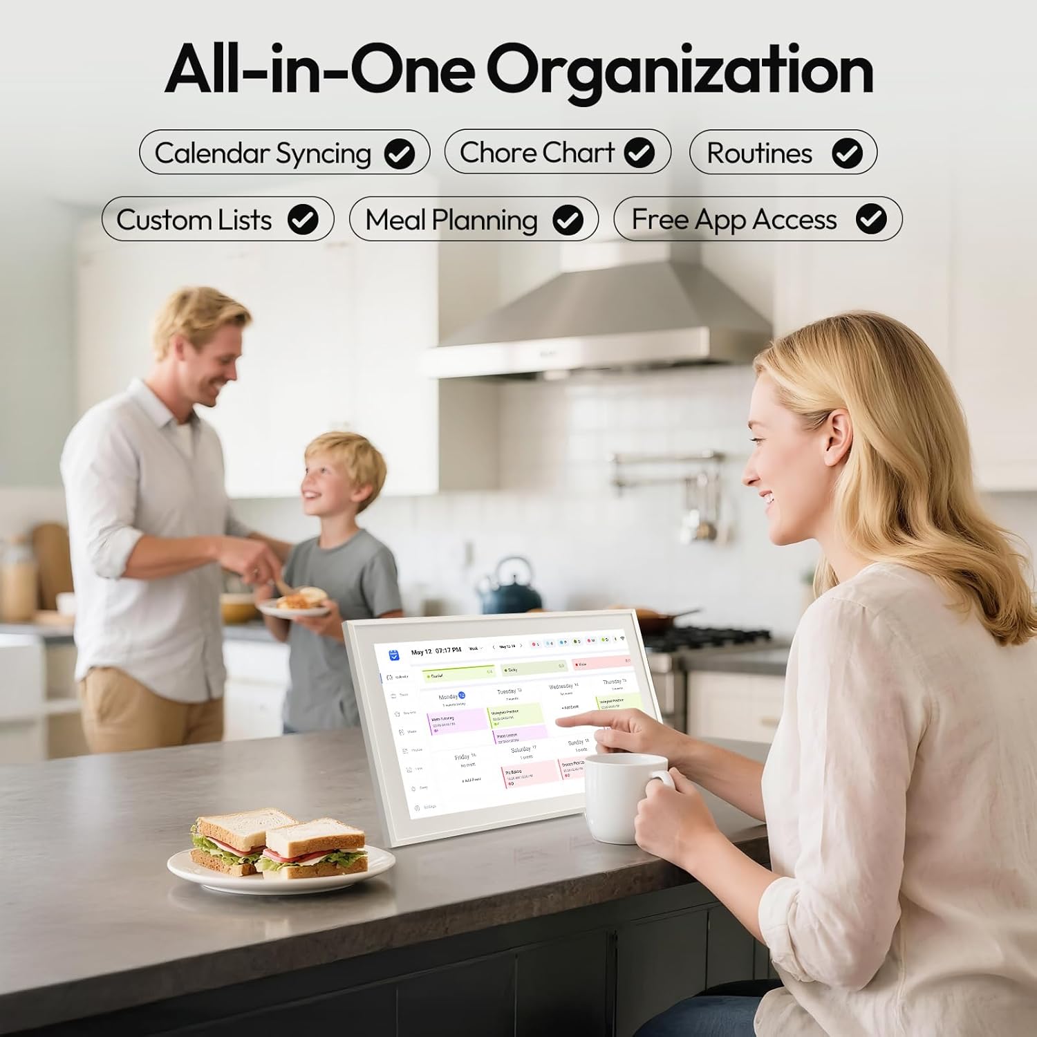 - [Charming Digital Picture Frame] When not in use, your smart calendar transforms into a beautiful digital picture frame. Showcase treasured family photos on the large screen, adding a touch of elegance to any room as modern home decor.