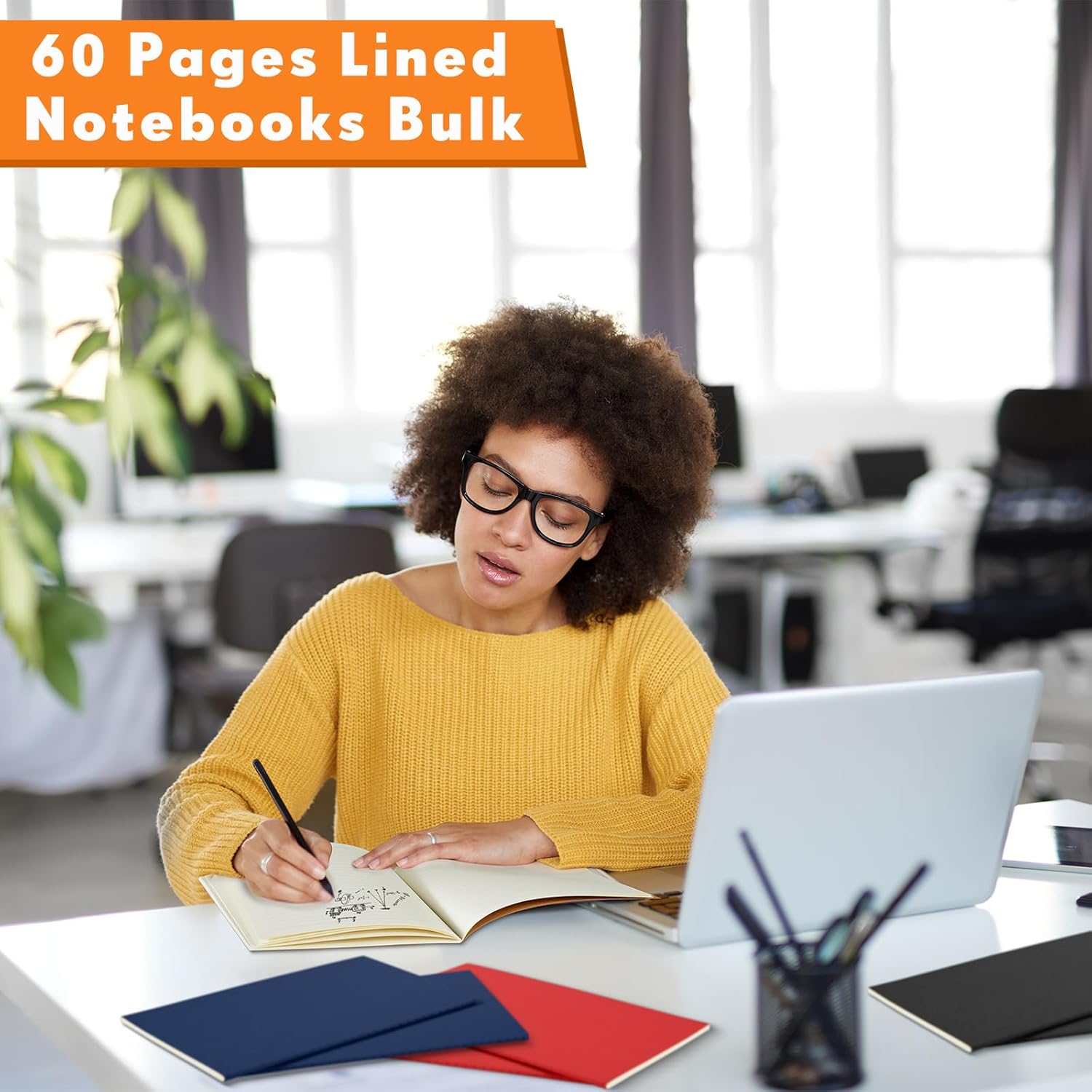 100 Pcs Kraft Notebook Journals 5.5 Inch x 8.3 Inch A5 Softcover Notebooks Bulk for Writing Sketch Office Notepad with 60 Pages 30 Sheets(Black, Brown, Red, Navy,Lined)