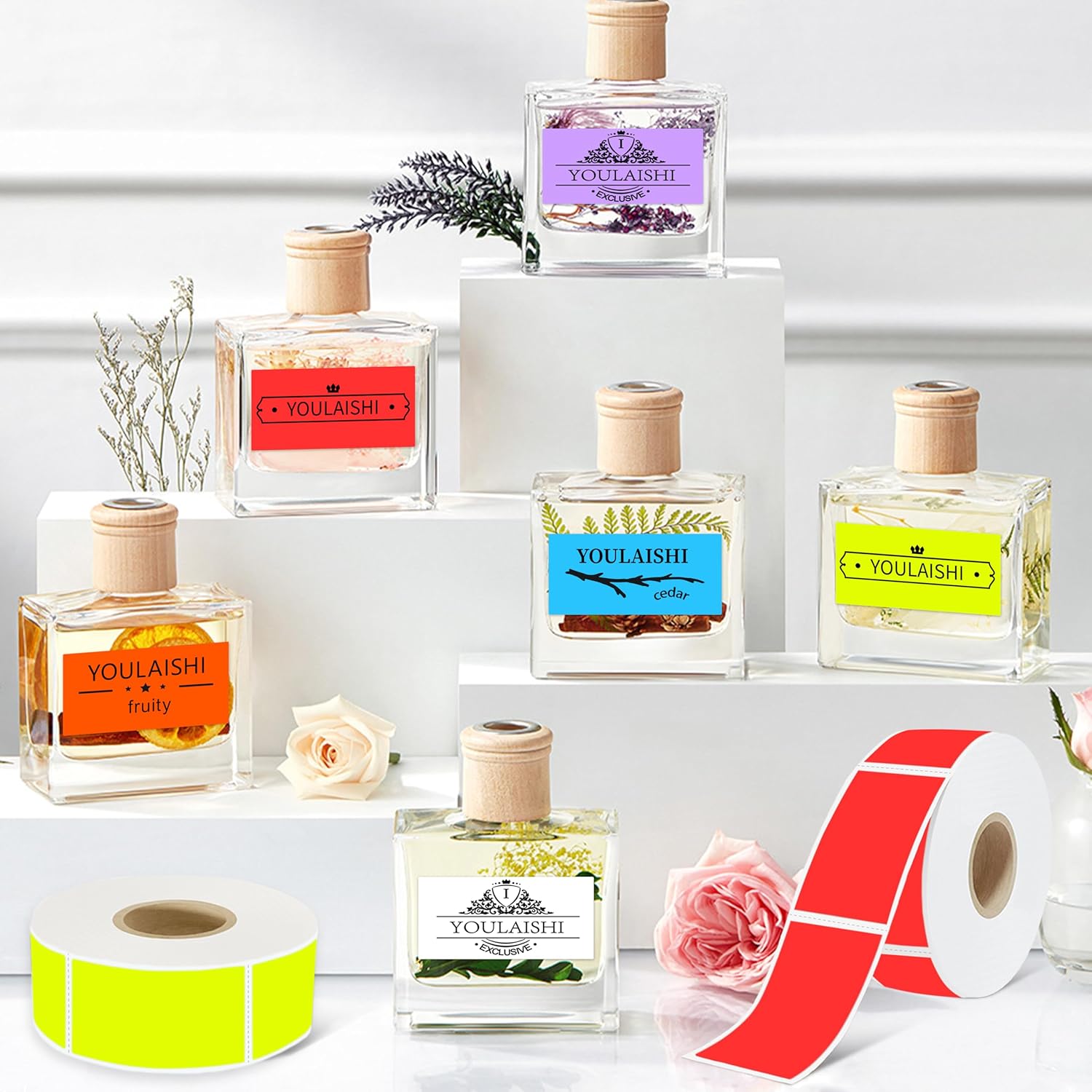 1X2 inch Label Stickers Roll for Thermal Printer 500PCS Colored Removable Freezer Labels Waterproof Blank Sticker Labels to Write on for Food Containers and Jars, Fluorescent Red
