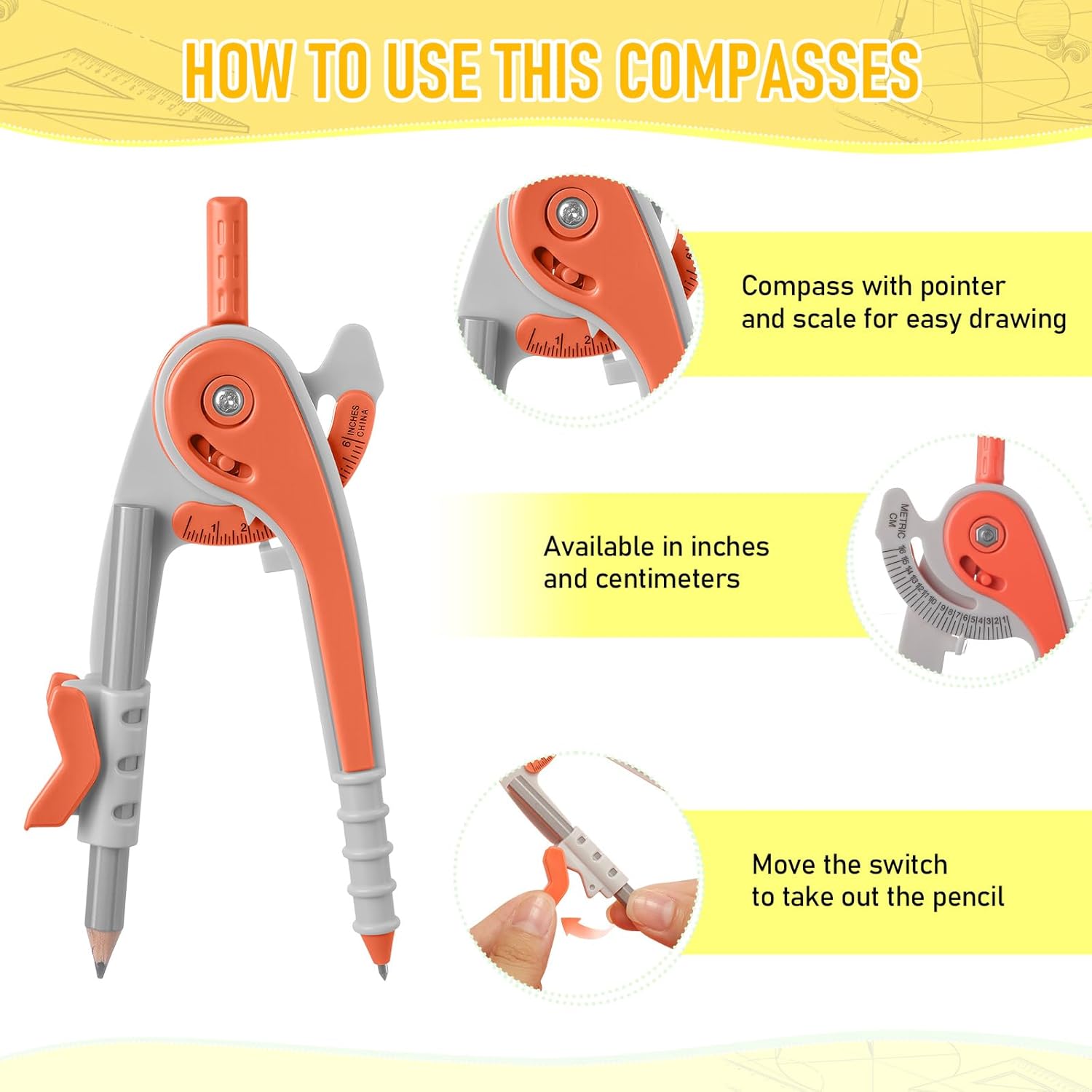 - Precise Dual Scale Design: these student compasses feature both centimeter scale and inch scale, allowing for accurate and convenient measurements; The design is suitable for geometry and math students who need to create circles, arcs, and angles for geometric shapes and calculations, making these compasses an essential tool for any math classroom