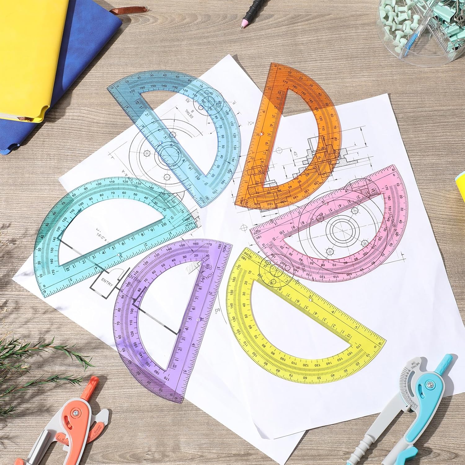 - 12 Compass and Protractor Set: Compasses and protractors are suitable for drawing circles and measuring angles, including six colors of red, pink, yellow, blue, green, and purple, with bright color combinations, the compass comes with round corner design on compass needle, safe and reliable to use without worrying about scratching, suitable for students, teachers, engineers, designers, artists, etc