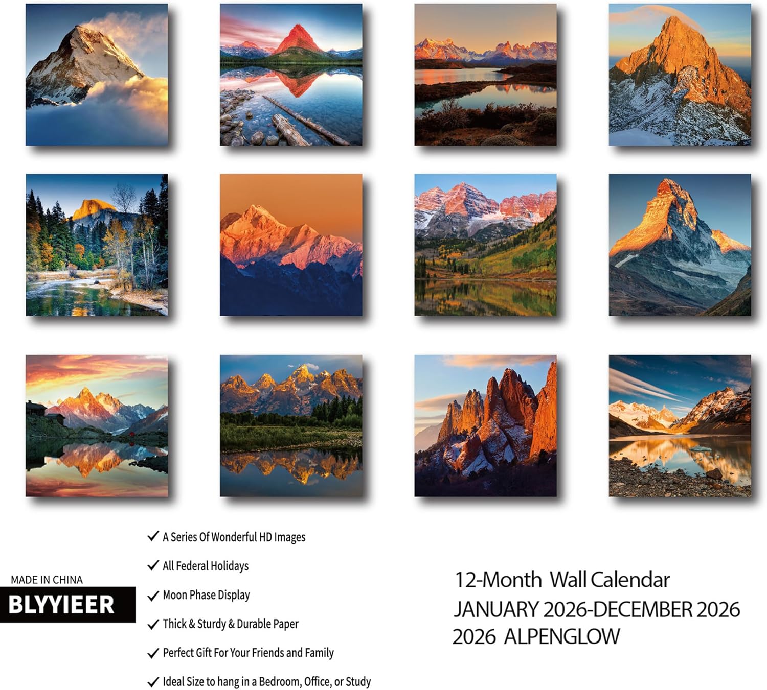 - 【Explore the Beauty landscape】BLYYIEER handpicked high definition and graceful photos, only the best. Our Calendar of 12-months. BLYYIEER square nature wall calendar simply looks so beautiful no matter it hangs at home or in the office.