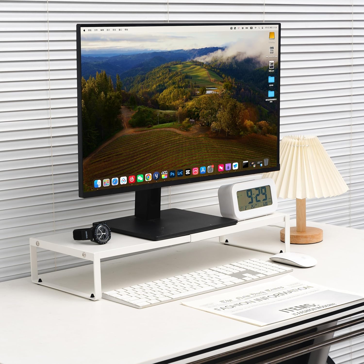 Adjustable Metal Monitor Stand - 11.6"-21.3" Ergonomic Desktop Riser for Computer/Laptop/TV, Heavy-Duty Office Shelf with Space-Saving Design (White)