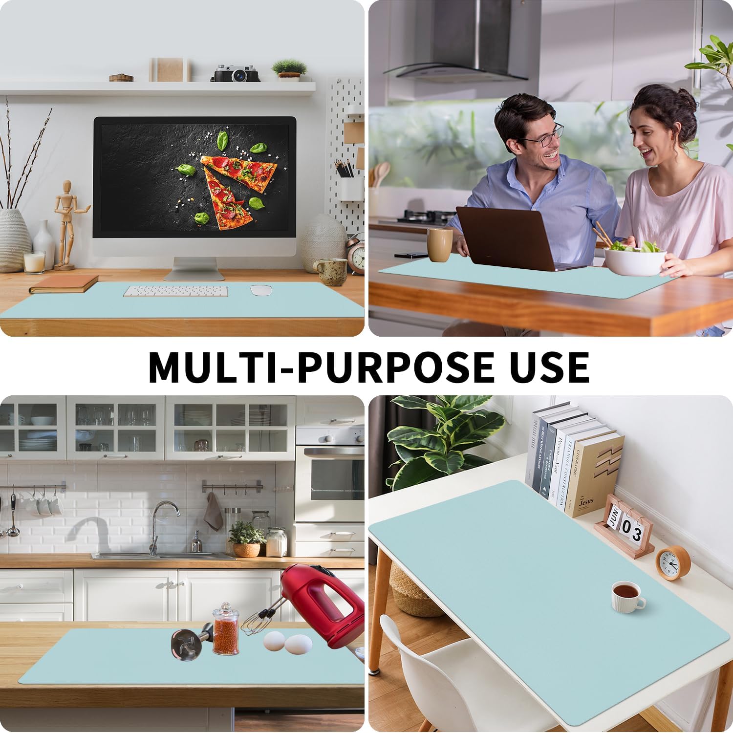 - 【Large Size Multipurpose】The 31.5×15.7 inch large size keyboard pad is large enough to hold a laptop, mouse, keyboard and mug. 2mm thickness provides you with a comfortable soft touch, you can use it as a writing pad, desk pad, mouse pad or desktop organizer for kitchen and office.