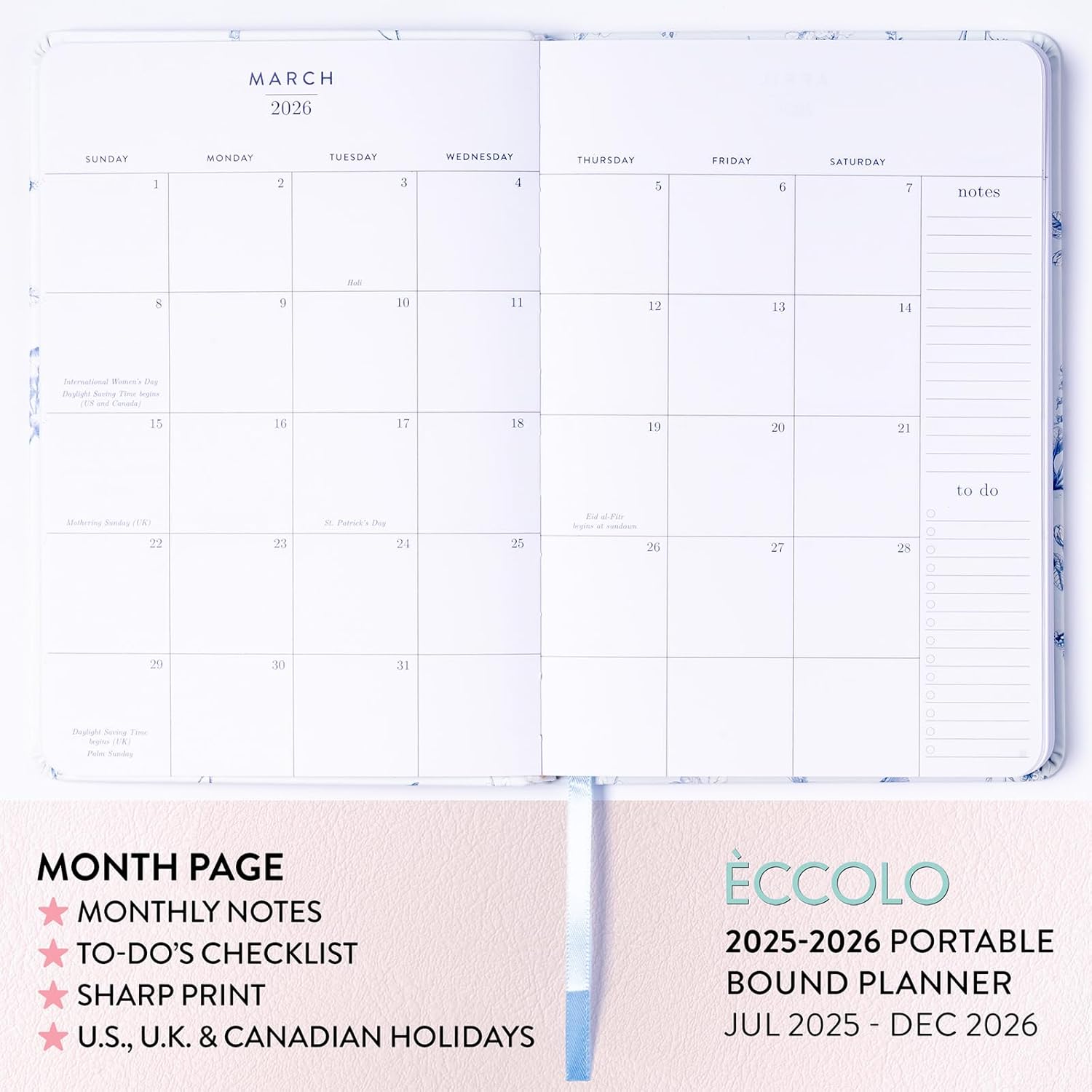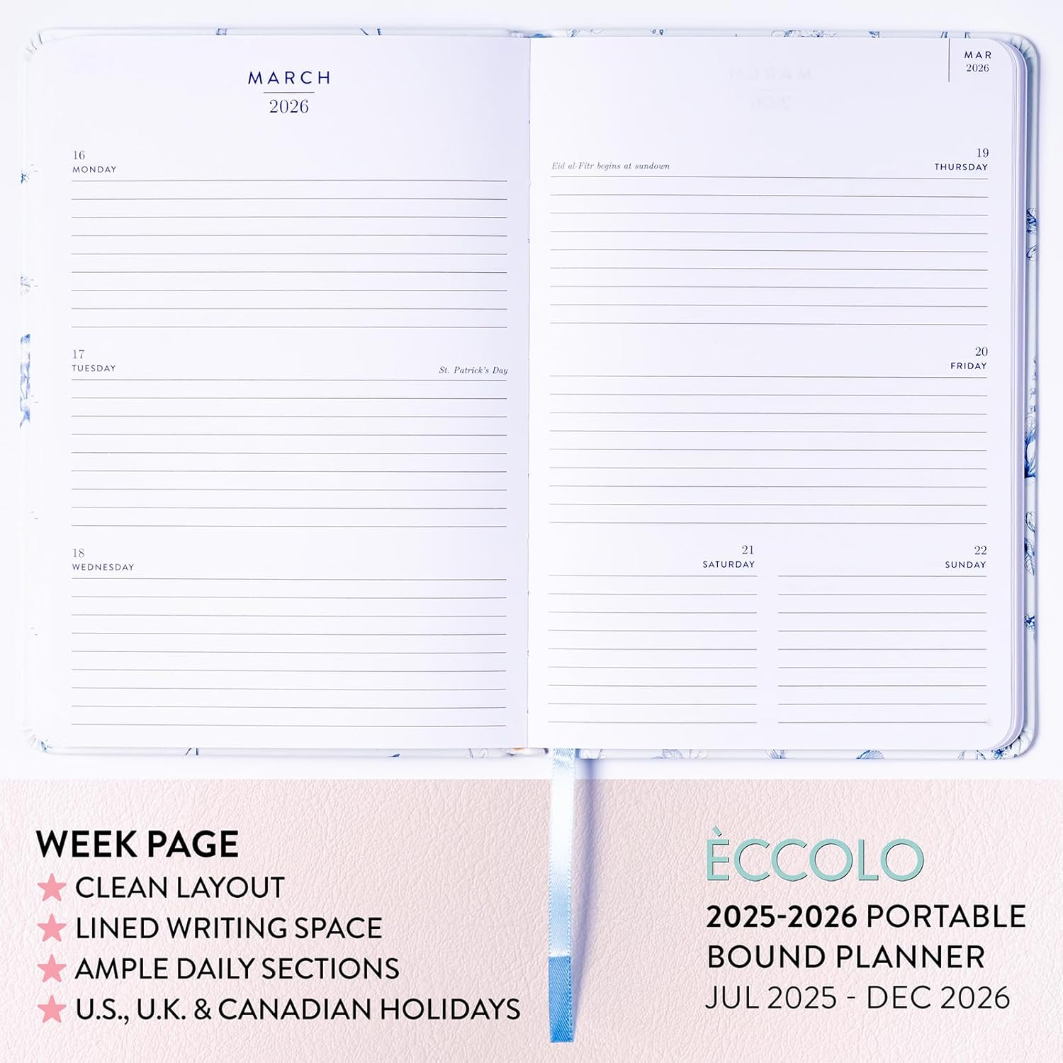 - STAY ORGANIZED: This easy to use agenda also features U.S., U.K. and Canadian holidays. Lined note pages at the end of the planner agenda book are a great place to record and note the little things.