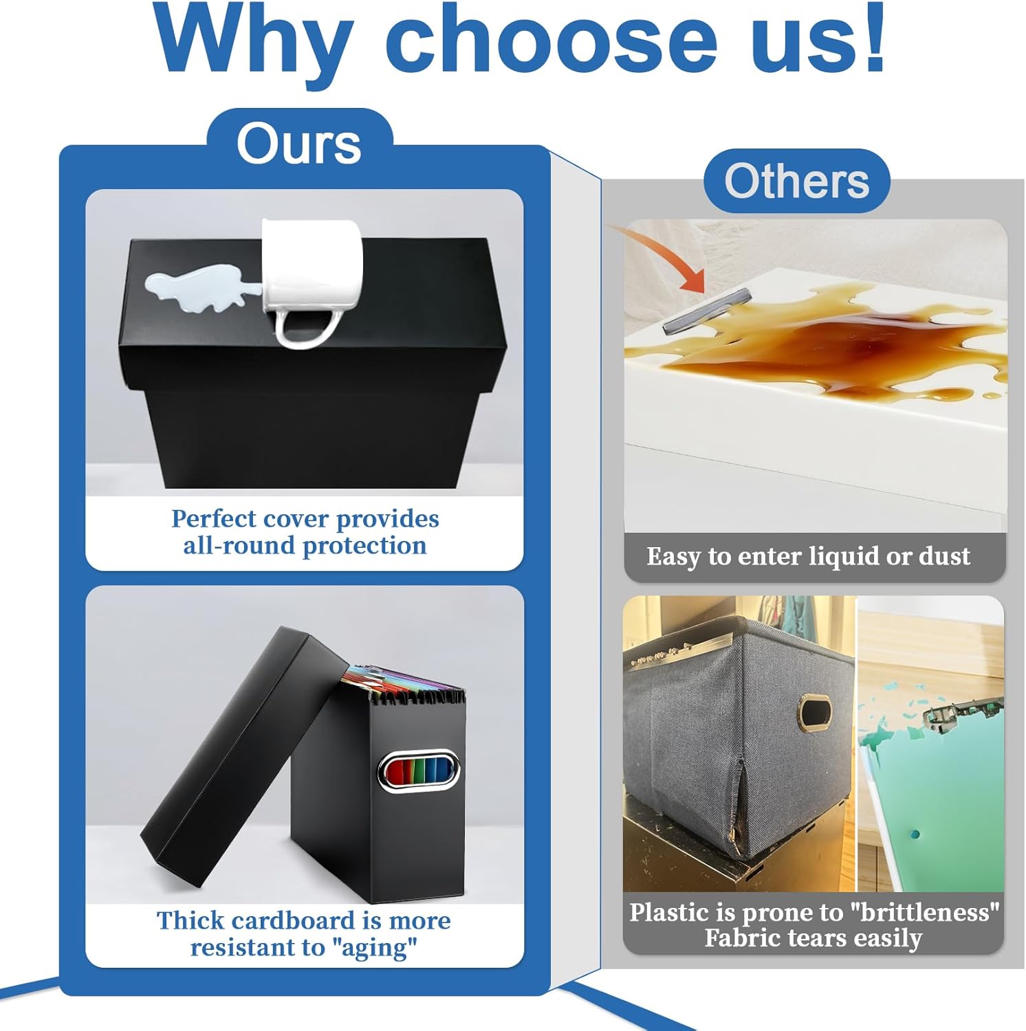 - Secure Document Protection Features: Tight-fitting lid + solid base prevent moisture, dust, and accidental damage. Use as a desktop file folder box, file storage bin, or hanging file folder holder