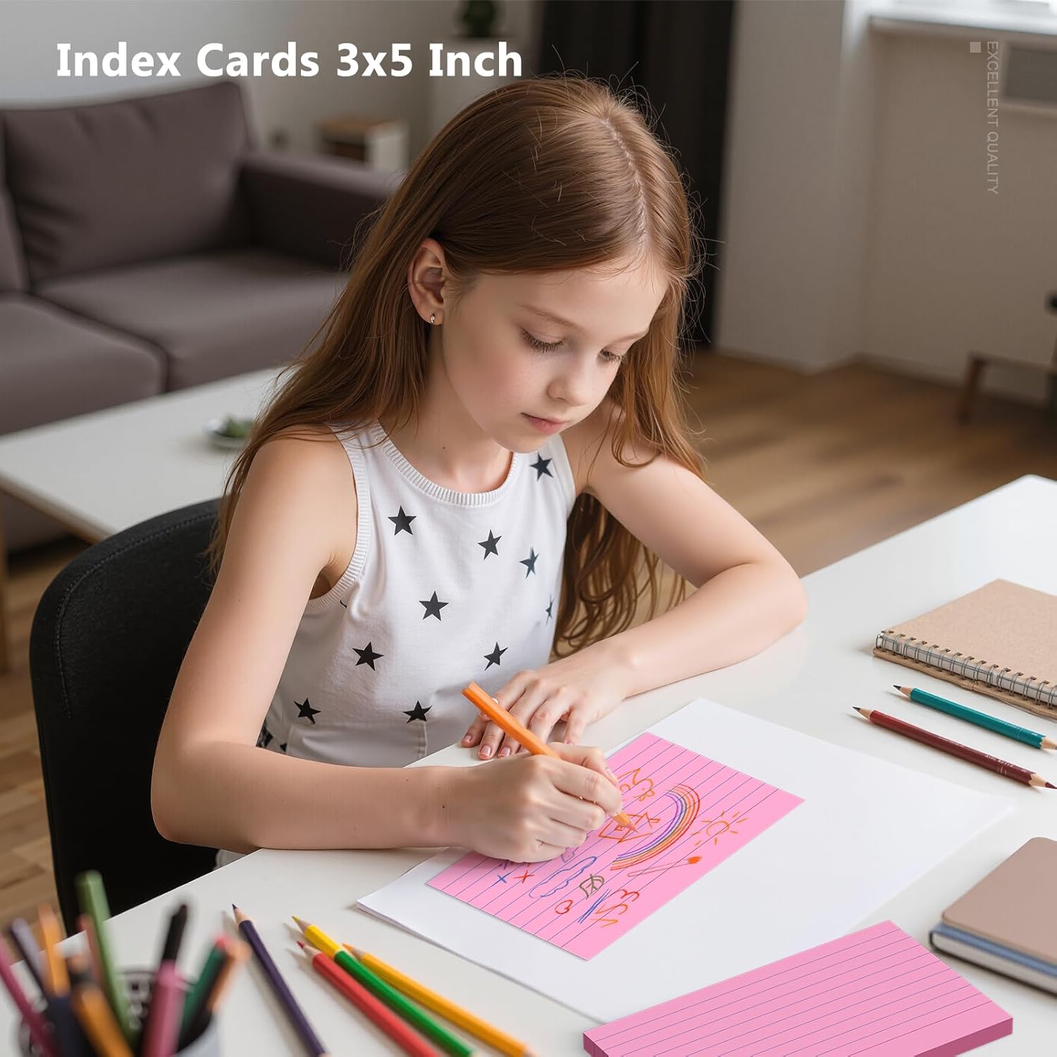 600 Count Index Cards 3 x 5 Inch Pink Lined Flash Cards Ideal for Studying and To-do-List, Portable Note Cards Taking for Students and Teachers, Flash Card Styled for Home, Office or School Use