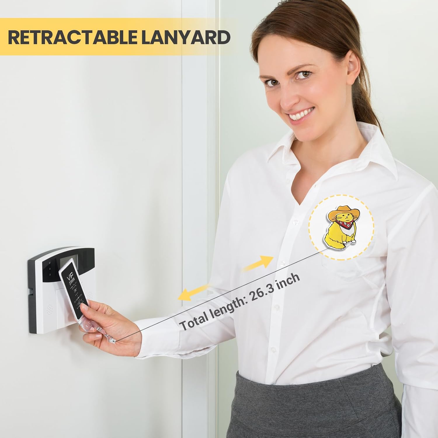 - RETRACTABLE DESIGN: Say goodbye to tangled lanyards! Our ID card holder offers a smooth one-touch system: pull the retractable cord to extend, release to snap back instantly. Ideal for people in fast-paced roles like RN LPN CNA MA medical worker, its precision gears keep badges secure.
