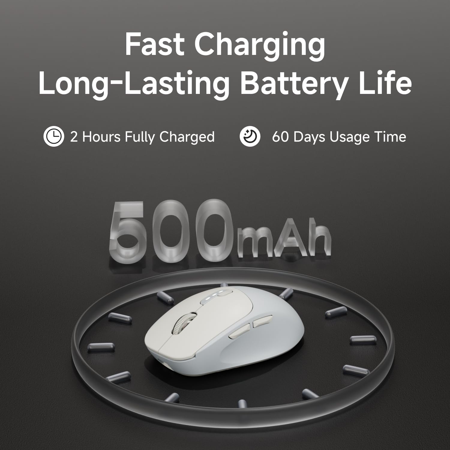 - Dual Connection: Connect two devices simultaneously using either Bluetooth/2.4G connection for a wireless mouse experience. Seamlessly switch between the connected devices with a simple slide of the switch button.