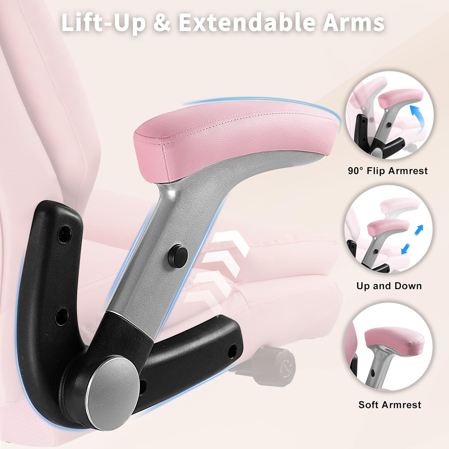 - 【Lift-Up Armrests - Space-Saving & Convenience】: This ergonomic high-back office chair features adjustable armrests that allow you to enjoy maximum relaxation while occupying minimal space. The armrests can be easily adjusted during use and conveniently tucked away when not needed, creating more room and facilitating movement. Whether you're typing, writing, or taking a break, our comfy high back heavy duty office chair ensures a satisfying seating experience.