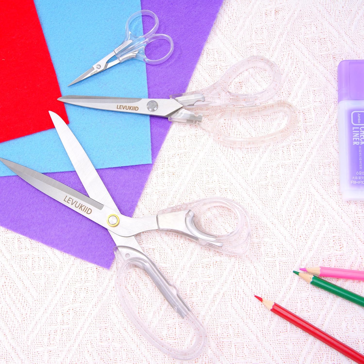 9 Inch All Purpose Scissors for Adults - Ins Style Clear Handle, 2Cr13 Stainless Steel Sharp Blade - Ideal for Fabric Crafts, Tailor's Shears - All-Purpose Fabric Scissors, Crafting & Office