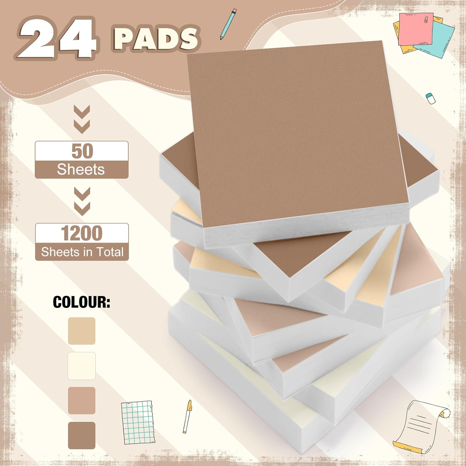 - Package Contents: you will receive 24 colorful sticky notes, 50 sheets each, a total of 1200 sheets; The abundant mini sticky notes allow you to use them for a long time without worrying about running out at a critical moment; Whether you are at home, school or office, you can easily cope with various note taking needs