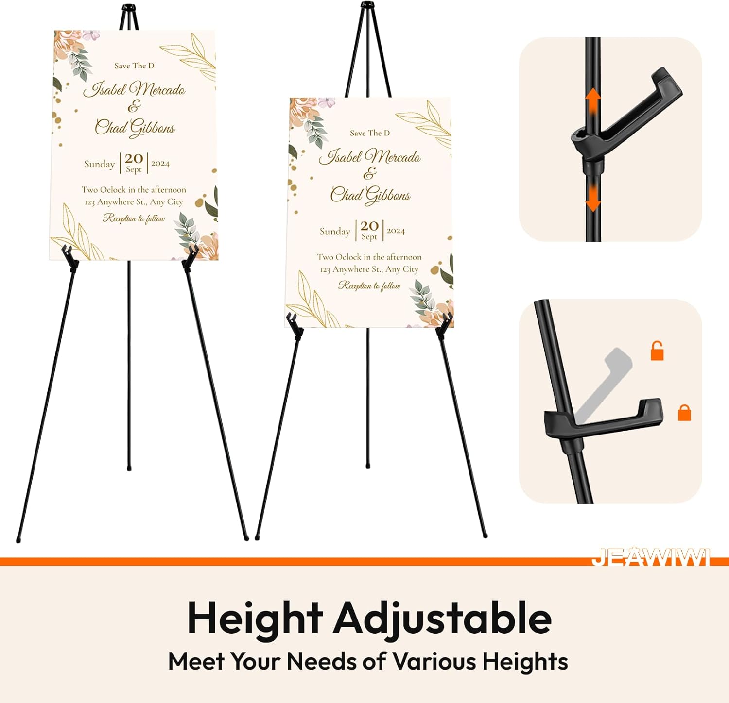 - 【EASY TO USE】 Our sign easel stand is designed with components such as spring-loaded joints and elastic internal cords, allowing it to be assembled in a fraction of the time. And no tools are required