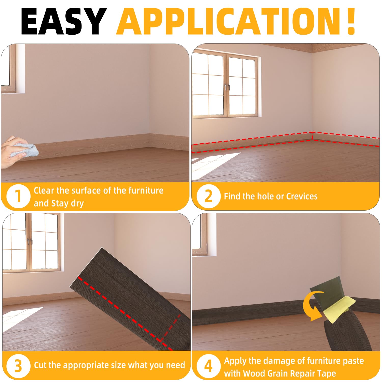 - √【HIGH QUALITY】- The Wood Grain Repair Tape is made of high quality Self Adhesive, which is durable and elastic, with a smooth surface and not easy to be dirty.When you repair Tables, Chairs, Baseboards, Doors, Windows, Floors, All Kinds of Furniture Renovation, Wood Grain Repair Tape will be your first choice.
