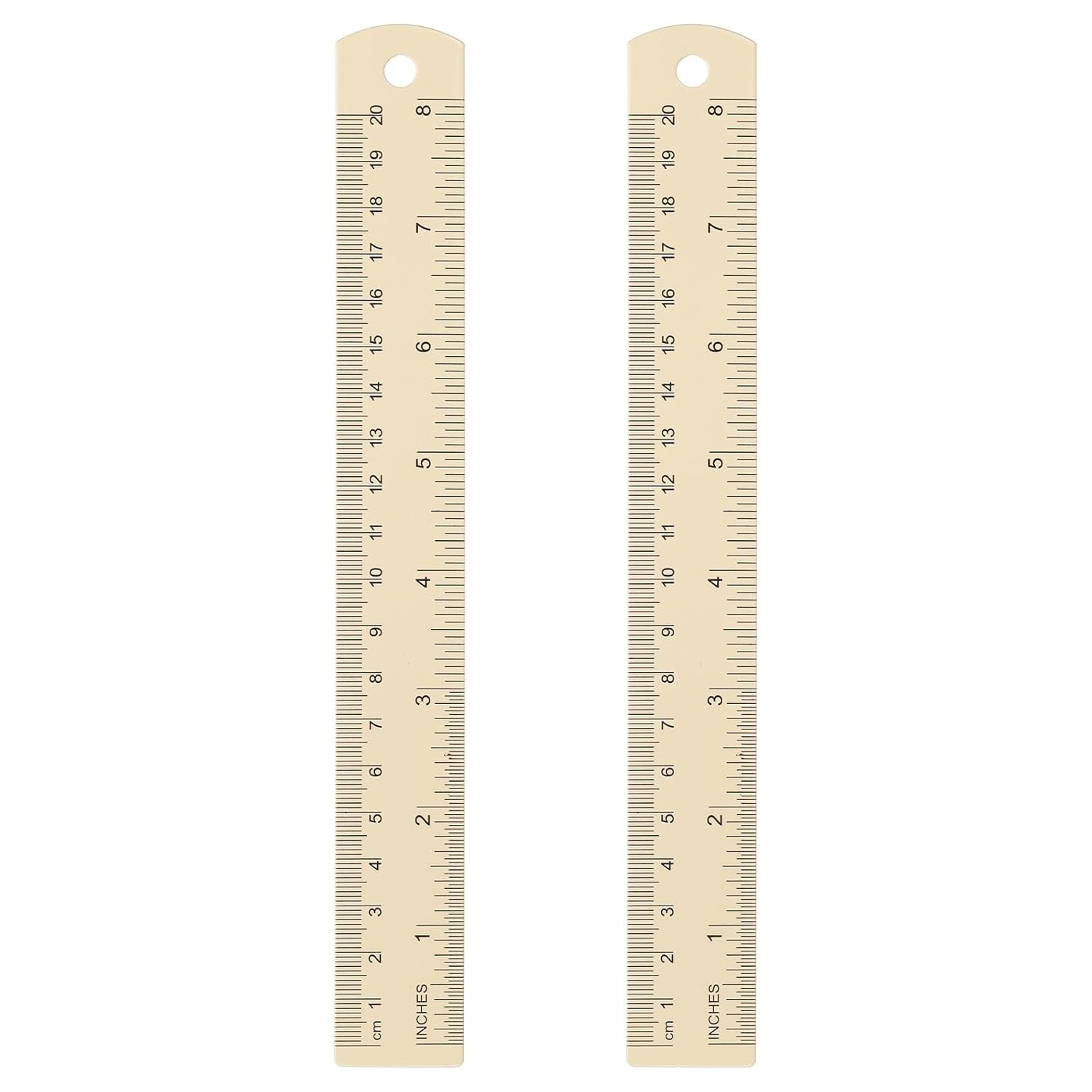 HARFINGTON 2pcs Metal Straight Ruler 20cm Metric SAE Aluminum Alloy Measuring Rulers Scale Tool with Hole for Measure Study Reading Classroom Office, Beige
