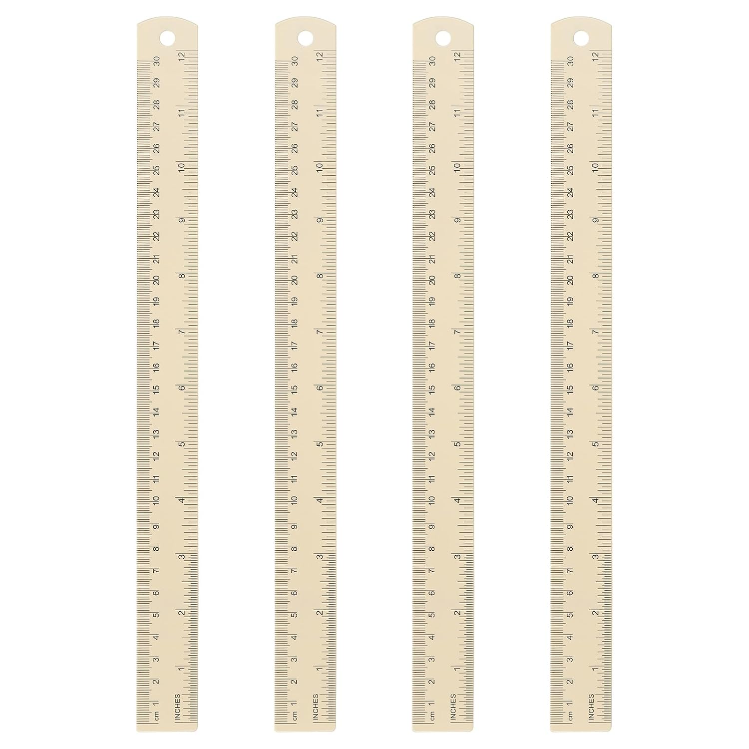 HARFINGTON 4pcs Metal Straight Ruler 30cm Metric SAE Aluminum Alloy Measuring Rulers Scale Tool with Hole for Measure Study Reading Classroom Office, Beige