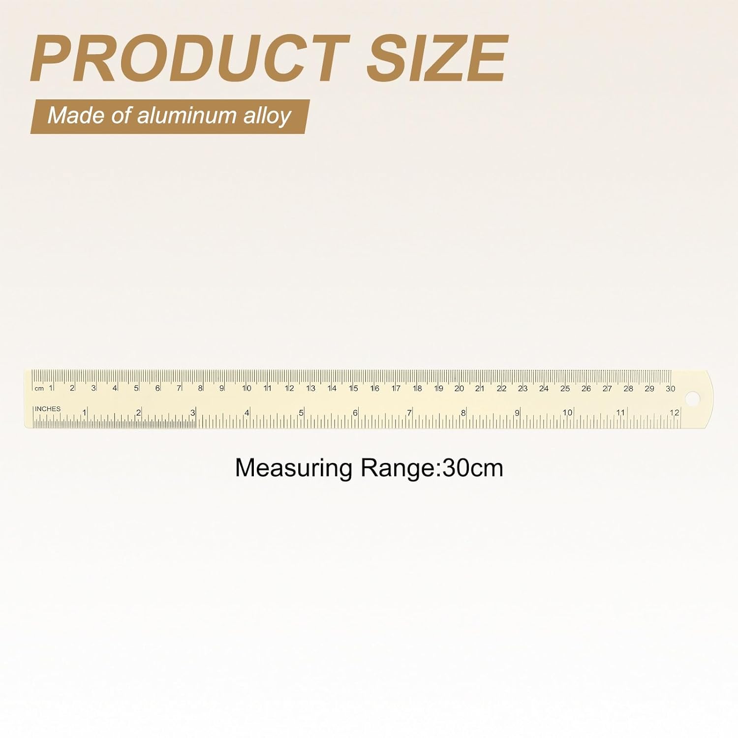 HARFINGTON 4pcs Metal Straight Ruler 30cm Metric SAE Aluminum Alloy Measuring Rulers Scale Tool with Hole for Measure Study Reading Classroom Office, White