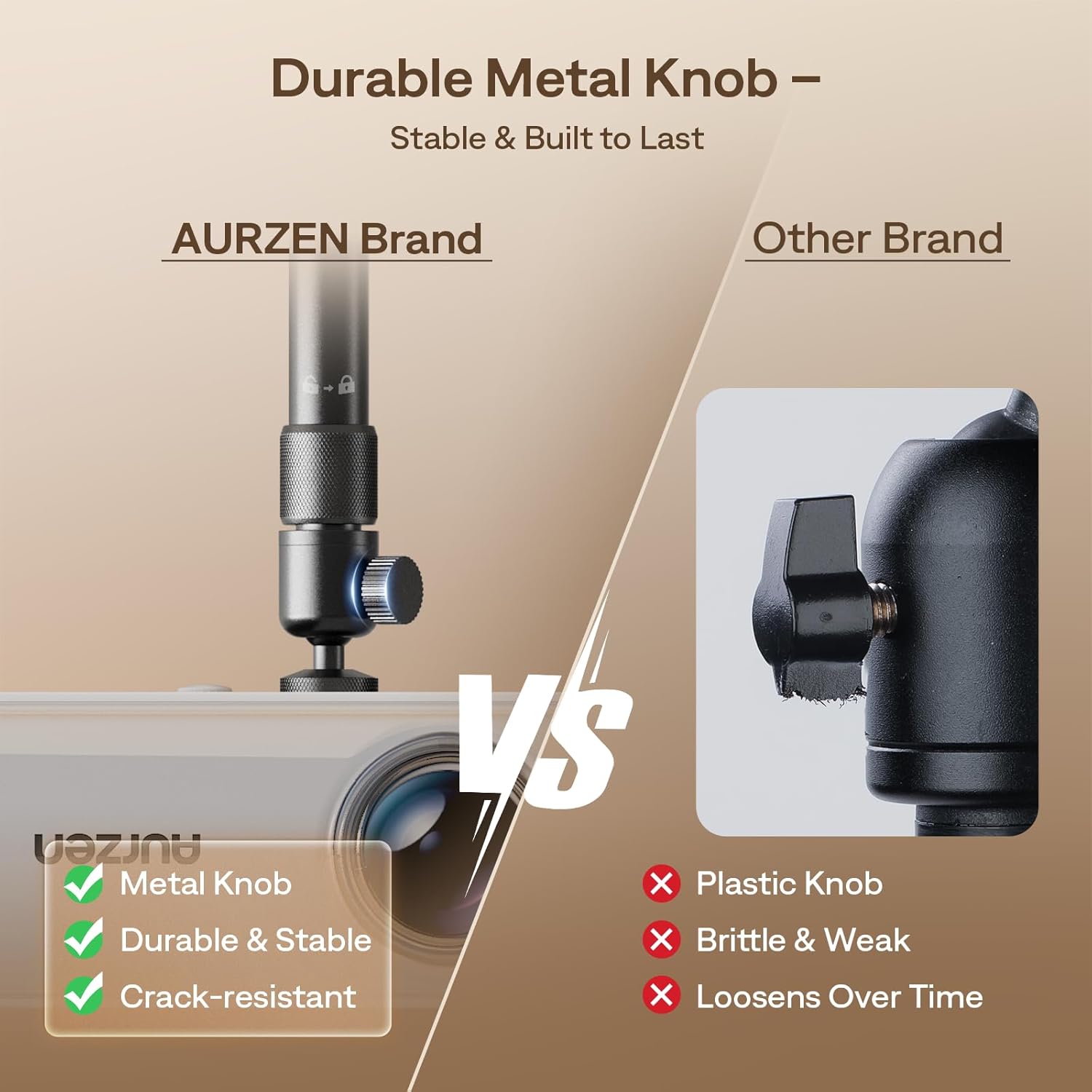 Aurzen Ceiling Projector Mount Bracket, 360° Rotation & 90° Tilt, Adjustable 9"-15" Length, ¼-Inch Screw, Compatible with TMY, HAPPRUN, Yaber, Epson & Most Projectors for Ceiling/Wall Use