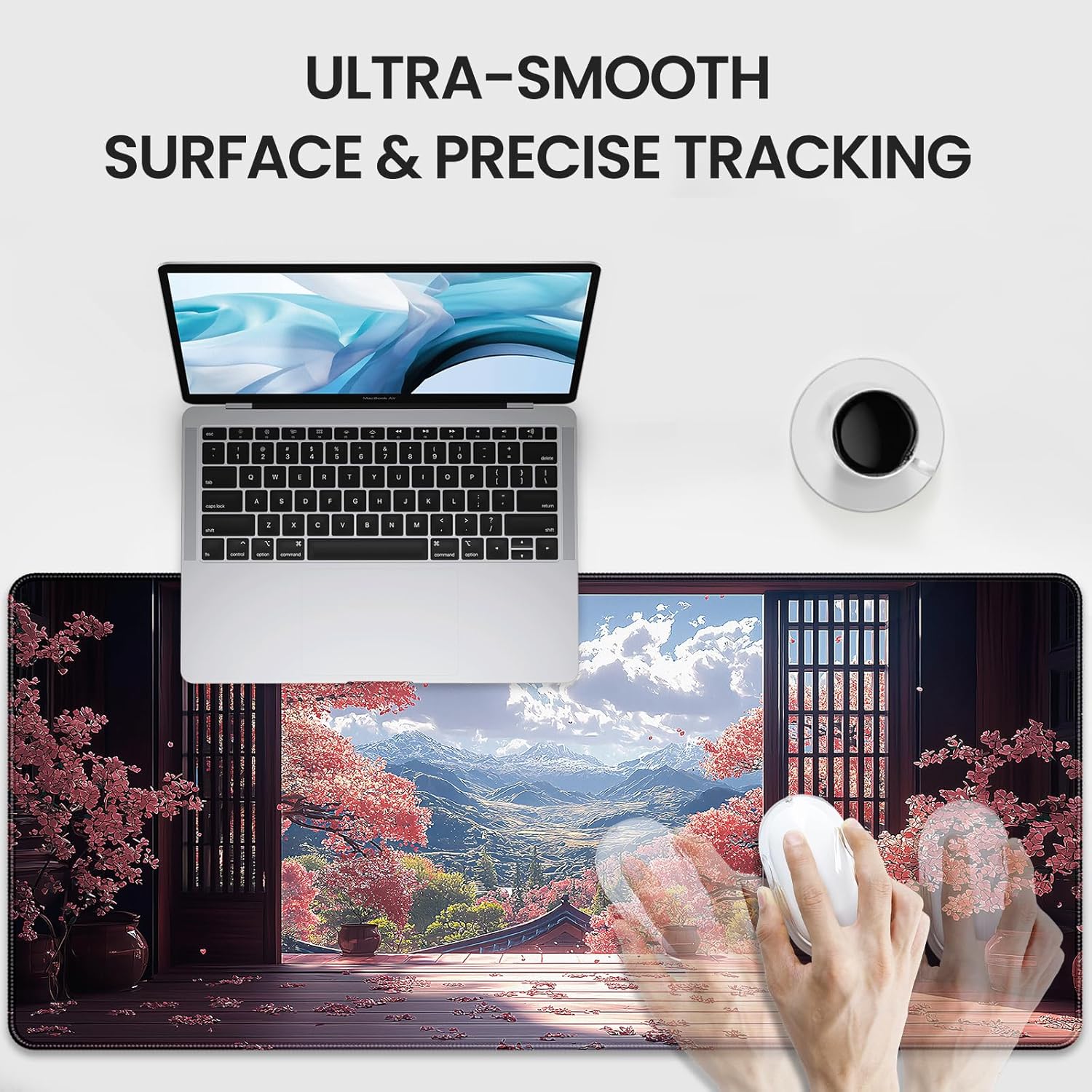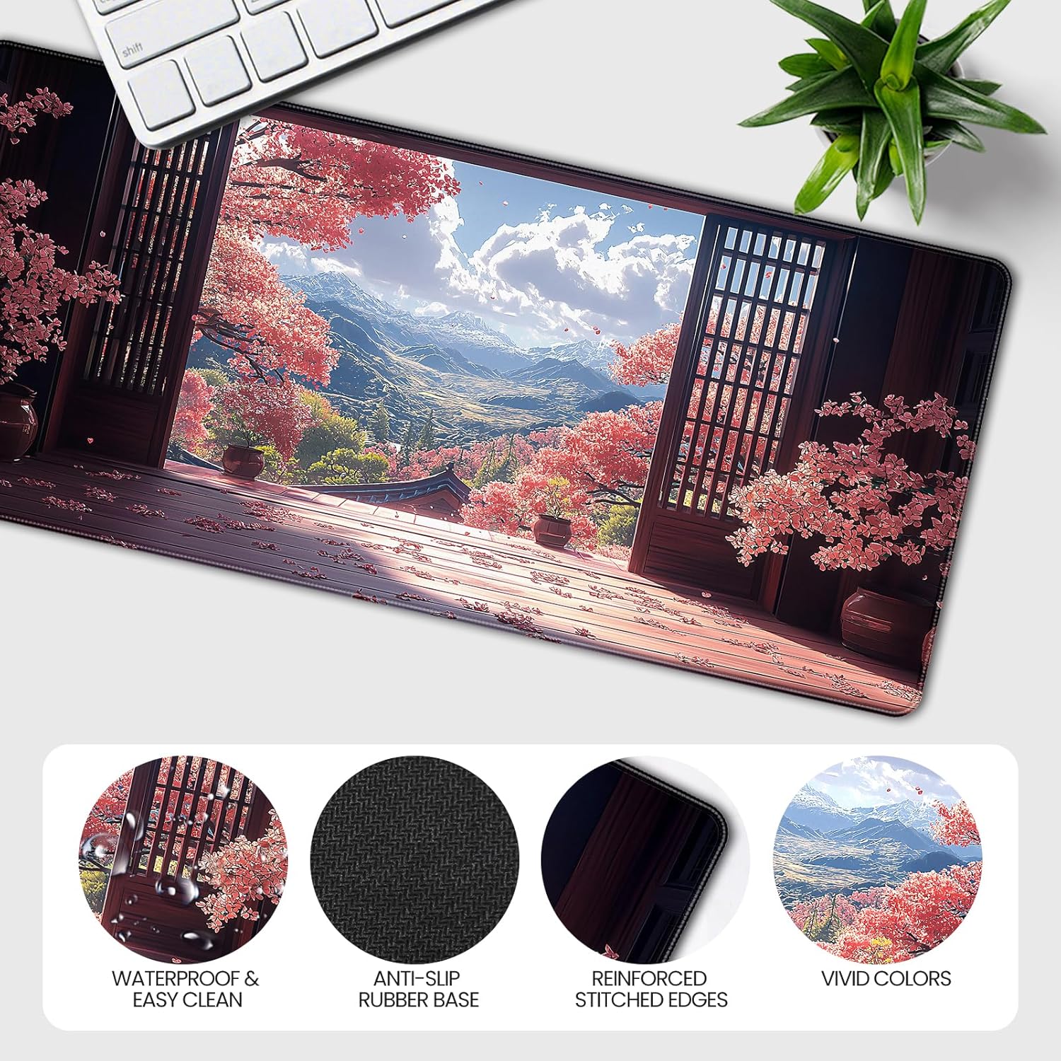 35.4 x 15.7 inches, Large Desktop Mouse pad, Keyboard and Mouse Pads for Work and Home Computers, and Large Laptop Mouse mat,Japanese-Style Cherry Blossom Mountain View