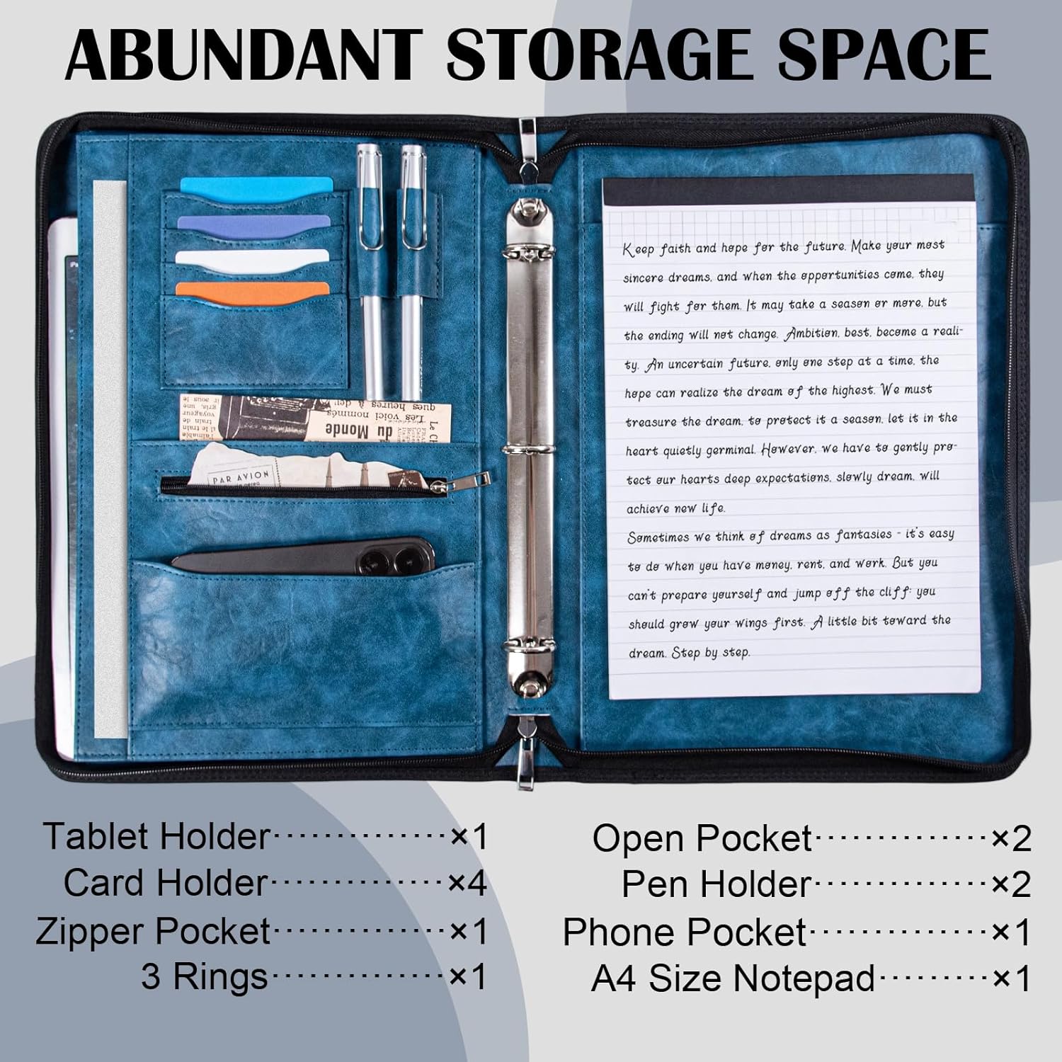 - 【Secure and Versatile - Padfolio with Zipper】The portfolio with 3 ring binder features a zipper to ensure the safety of your resumes, important documents, laptop, and cards. Additionally, the interior of padfolio for men include multiple compartments, keeping your essentials neatly organized and within easy reach, helping you stay confident and composed during interviews and work.