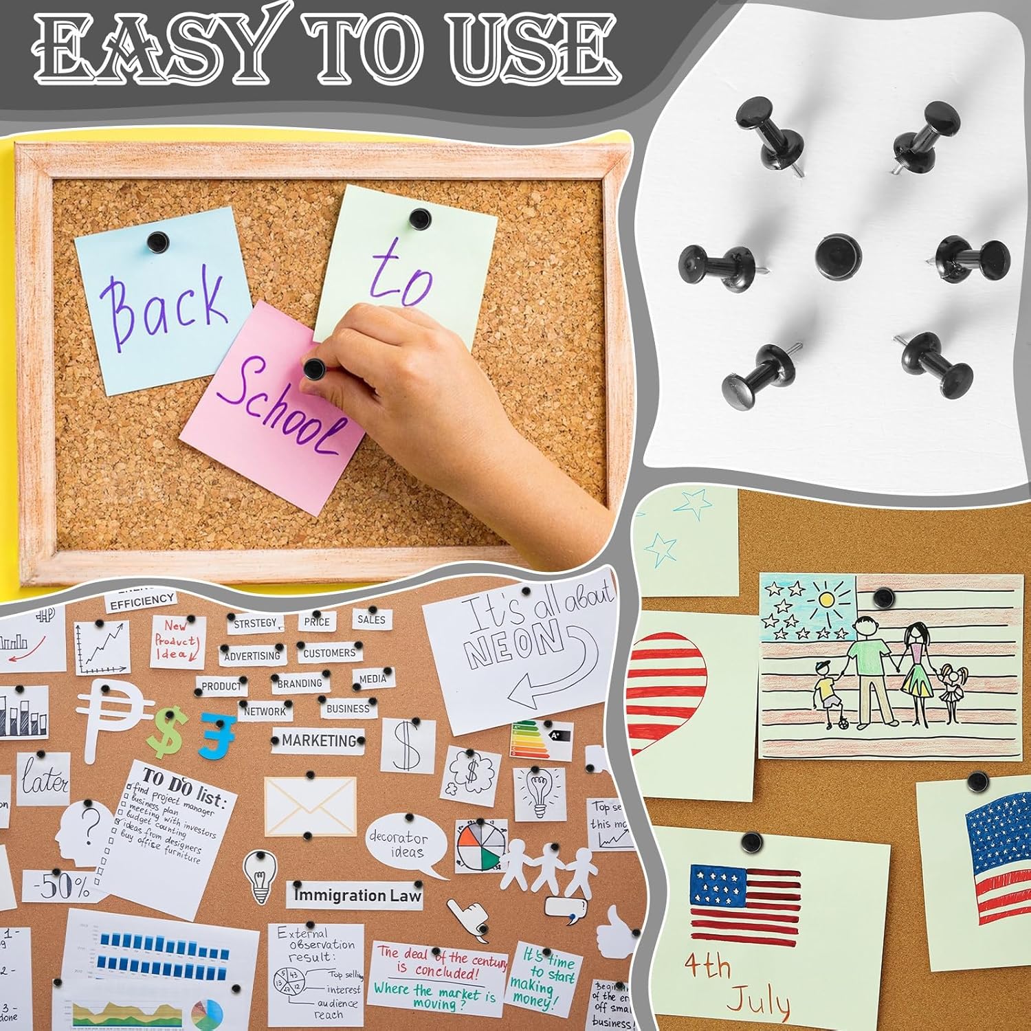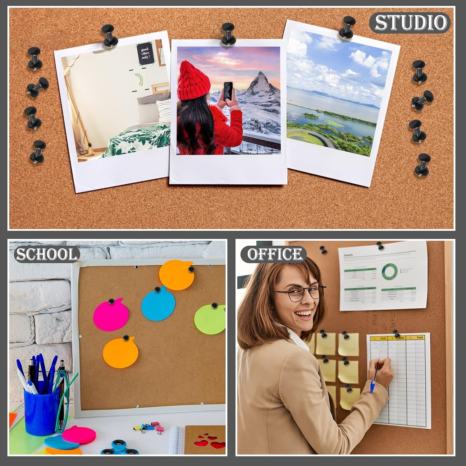 - VERSATILE USE: Perfect for securing papers, photos, and decorative items to cork boards, bulletin boards, and other suitable surfaces