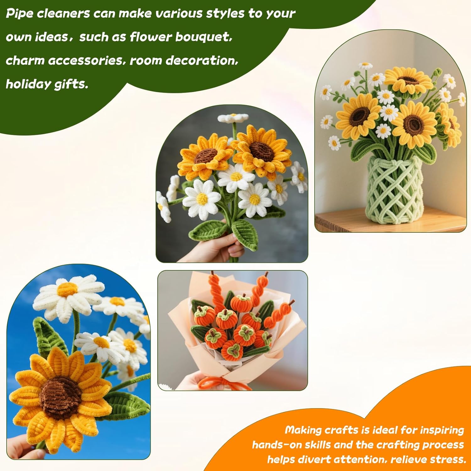 - 🌻【Durable and fade-resistant】Chenille stems for crafts stay vibrant for years,built to last ,won’t fade like real flowers,it is suitable for Hypoallergenic person,handmade shows you care as Back-to-School Gifts,Graduation Gifts,Holiday Gift,Birthday Gifts,Teacher’s day Gift.