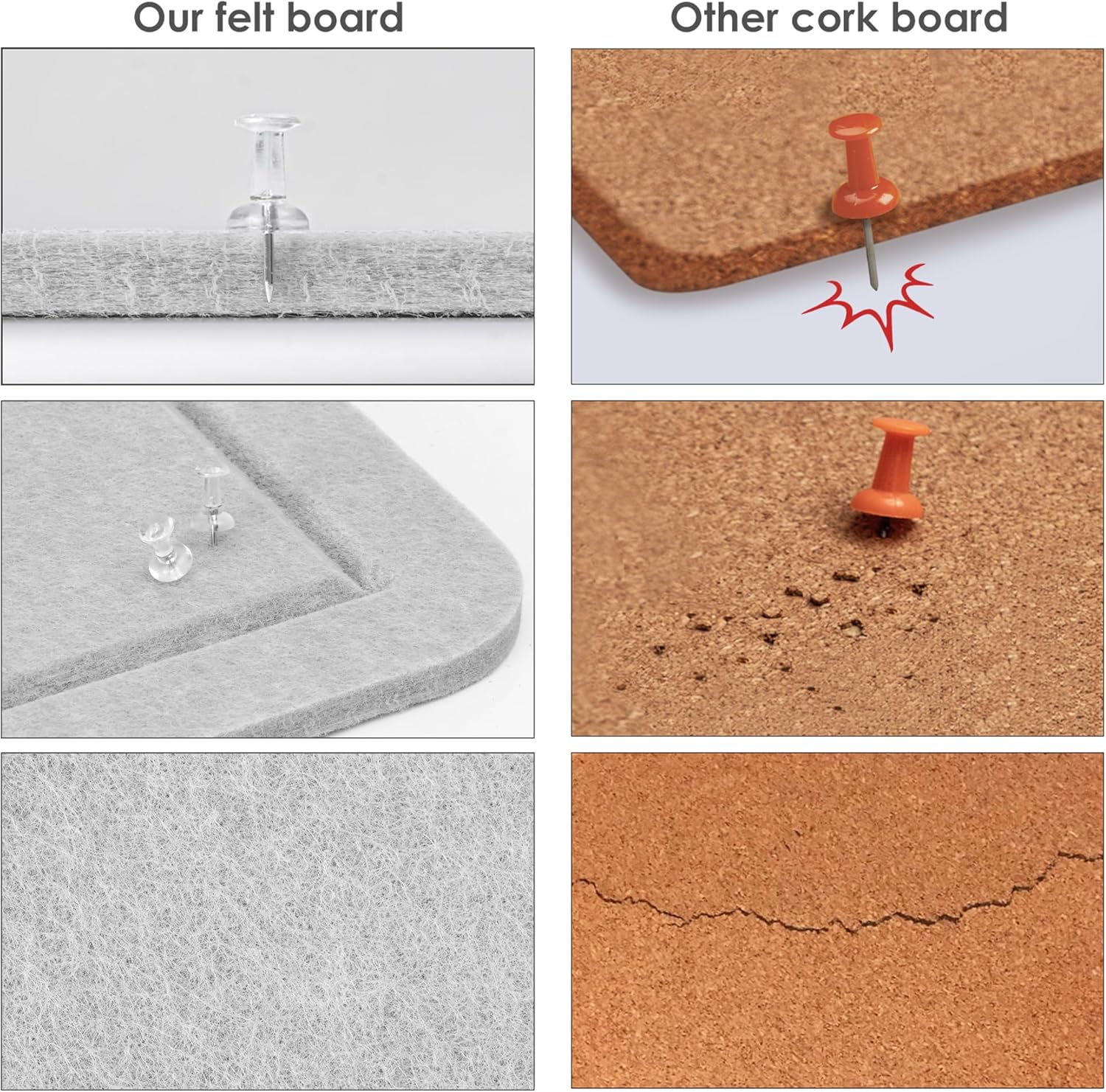 - Lightweight & Long-Lasting: Made from premium polyester fiber, this felt decor board is lightweight yet sturdy. With a 0.35-inch thickness, it holds push pins securely. The self-healing surface withstands repeated use, keeping it looking like new.