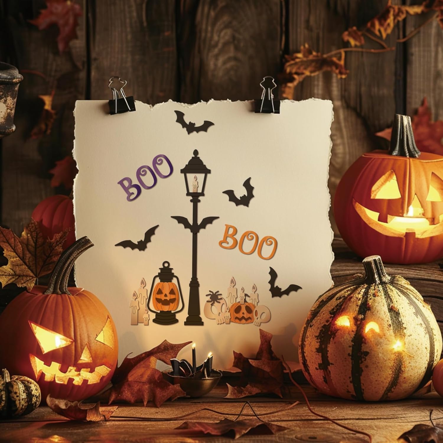 GLOBLELAND Halloween Pumpkin Lamp Cutting Dies for Card Making Skeleton Bat Cut Die for DIY Scrapbooking Journal Embossing Paper Craft Decor