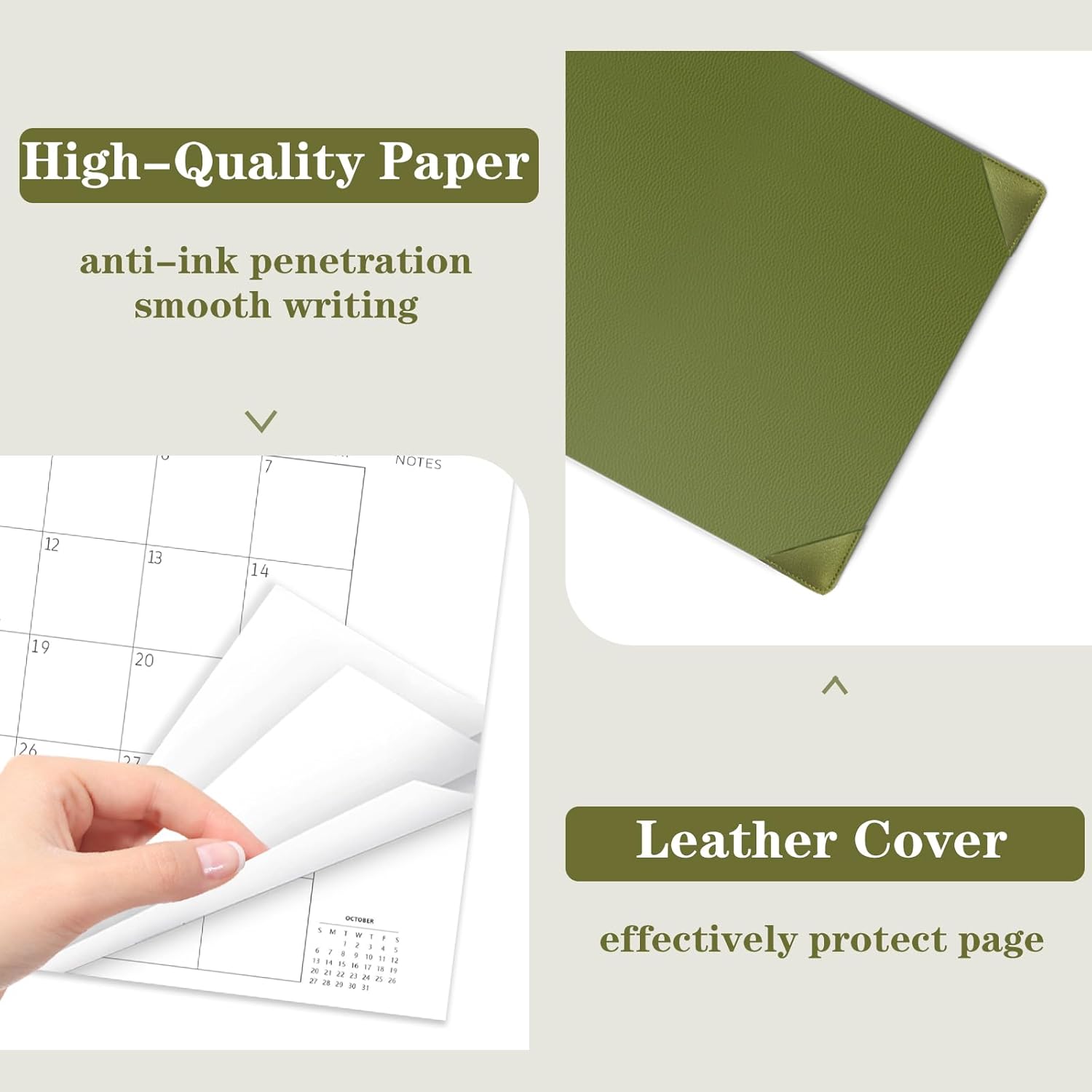 - 📔【Clean & Simple Design】2026 desk calendar with fresh floral design patterns on the inner pages and green leather cover brings vitality to life. Besides being a planning tool, it can also be used as a desktop decoration for teachers, students, and office workers