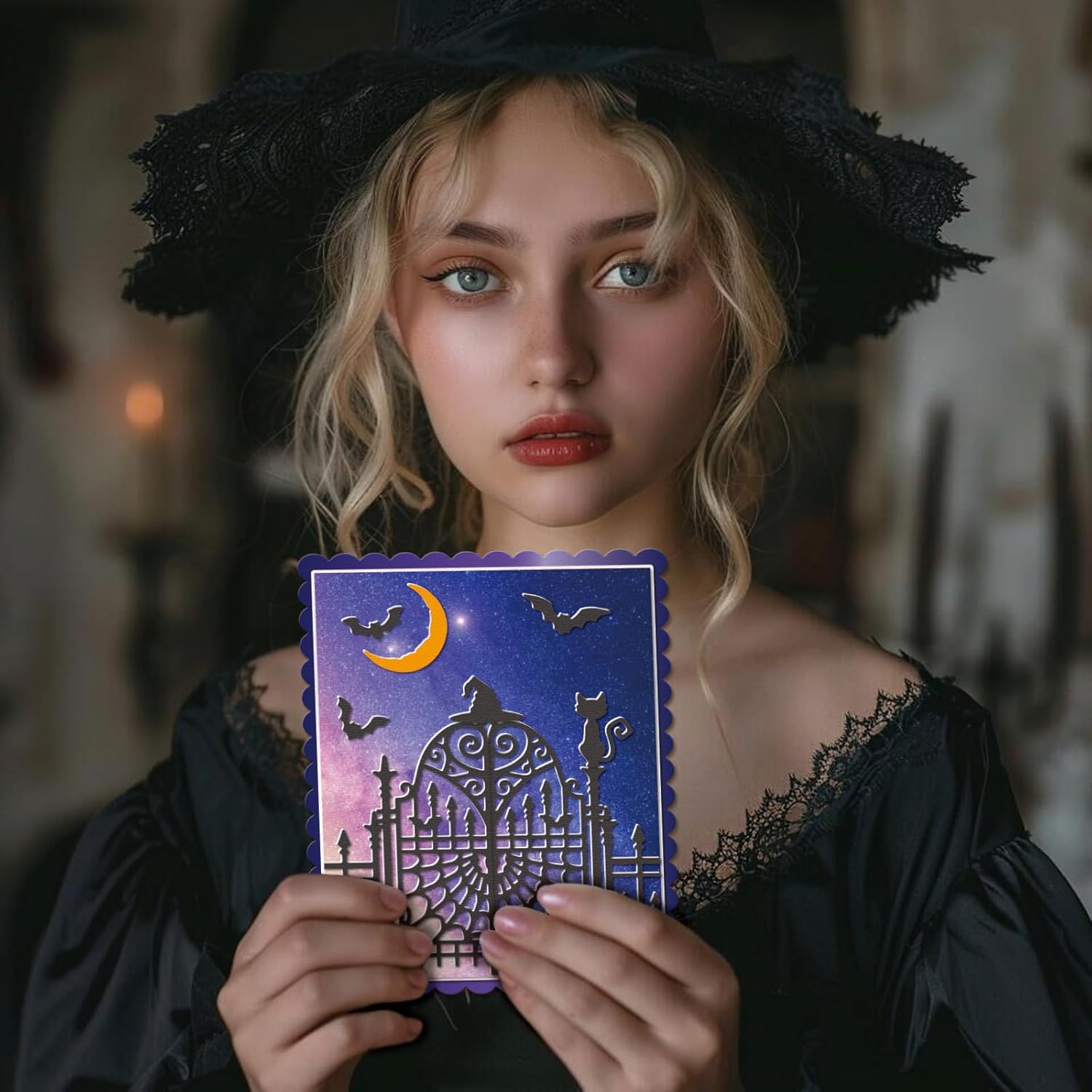 GLOBLELAND Halloween Gate Cutting Dies for Card Making Witch and Cat Cut Die for DIY Scrapbooking Journal Embossing Paper Craft Decor