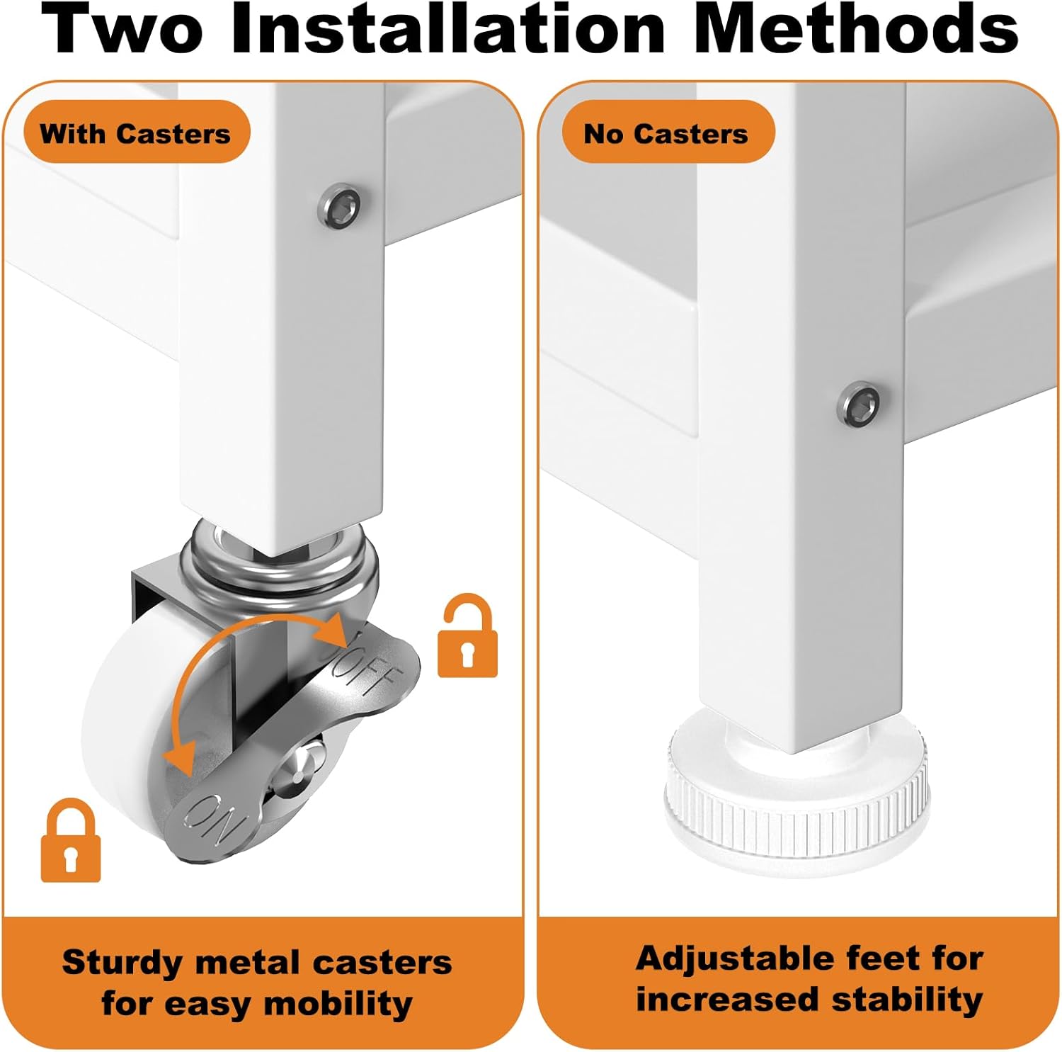 - 【Two Installation Choices】The office stand can be used with or without wheels. Not only does it make it easy to move the printer around without having to manually lift it, but it also makes it easy to clean underneath the 3-tier dual printer stand.
