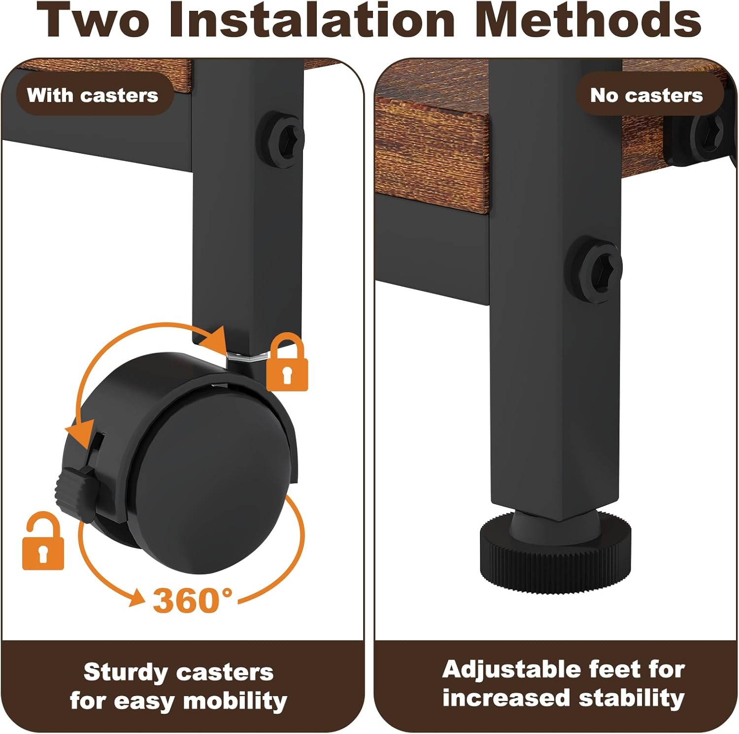 - Two Installation Options: The printer table can be used with or without wheels.Not only does it make it easy to move the printer around without having to manually lift it, but it also makes it easy to clean underneath the printer stand.