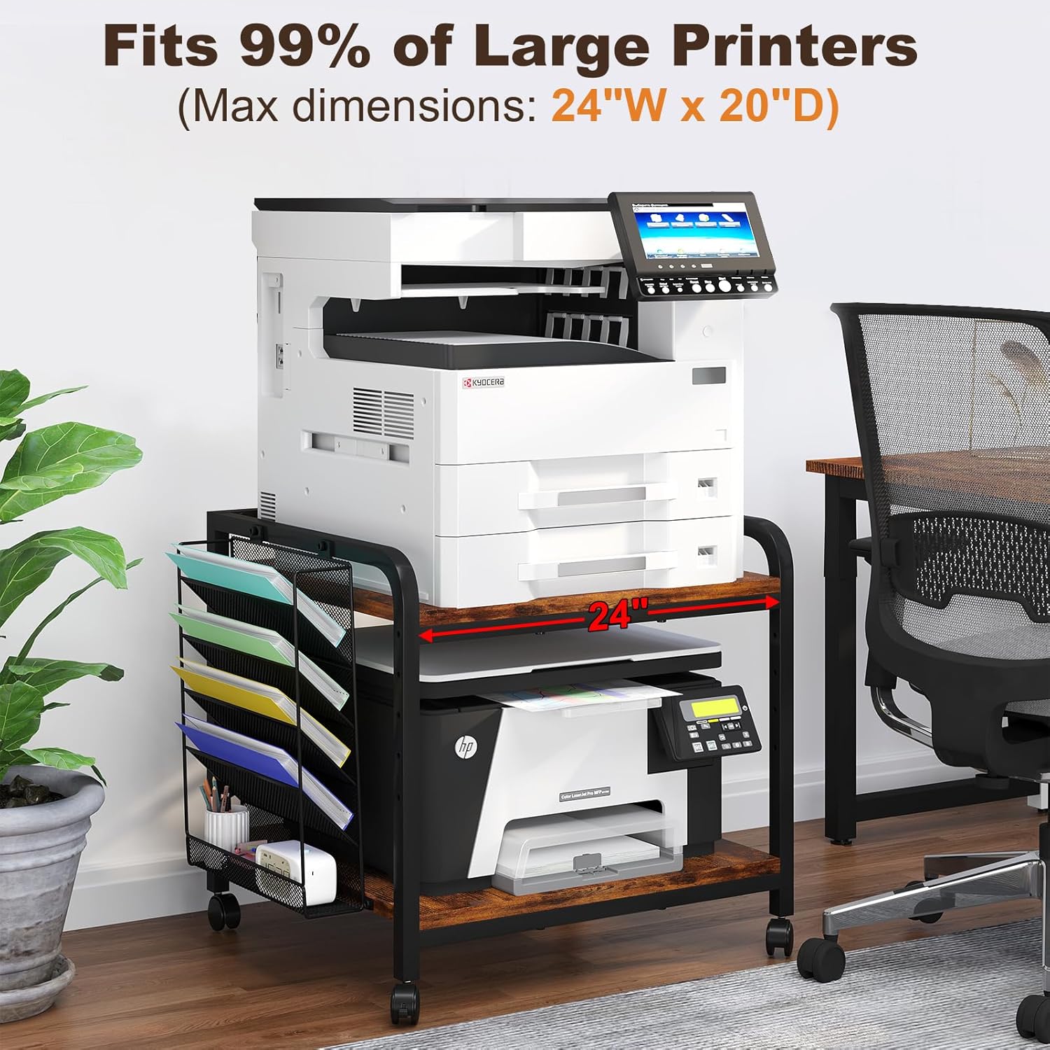 - With File Holder Organizer: This 2 Tier printer stand delivers rock-solid support for your printer while seamlessly integrating a multi-functional file organizer. Now your printers and documents each have their dedicated home, making your workspace perfectly organized.