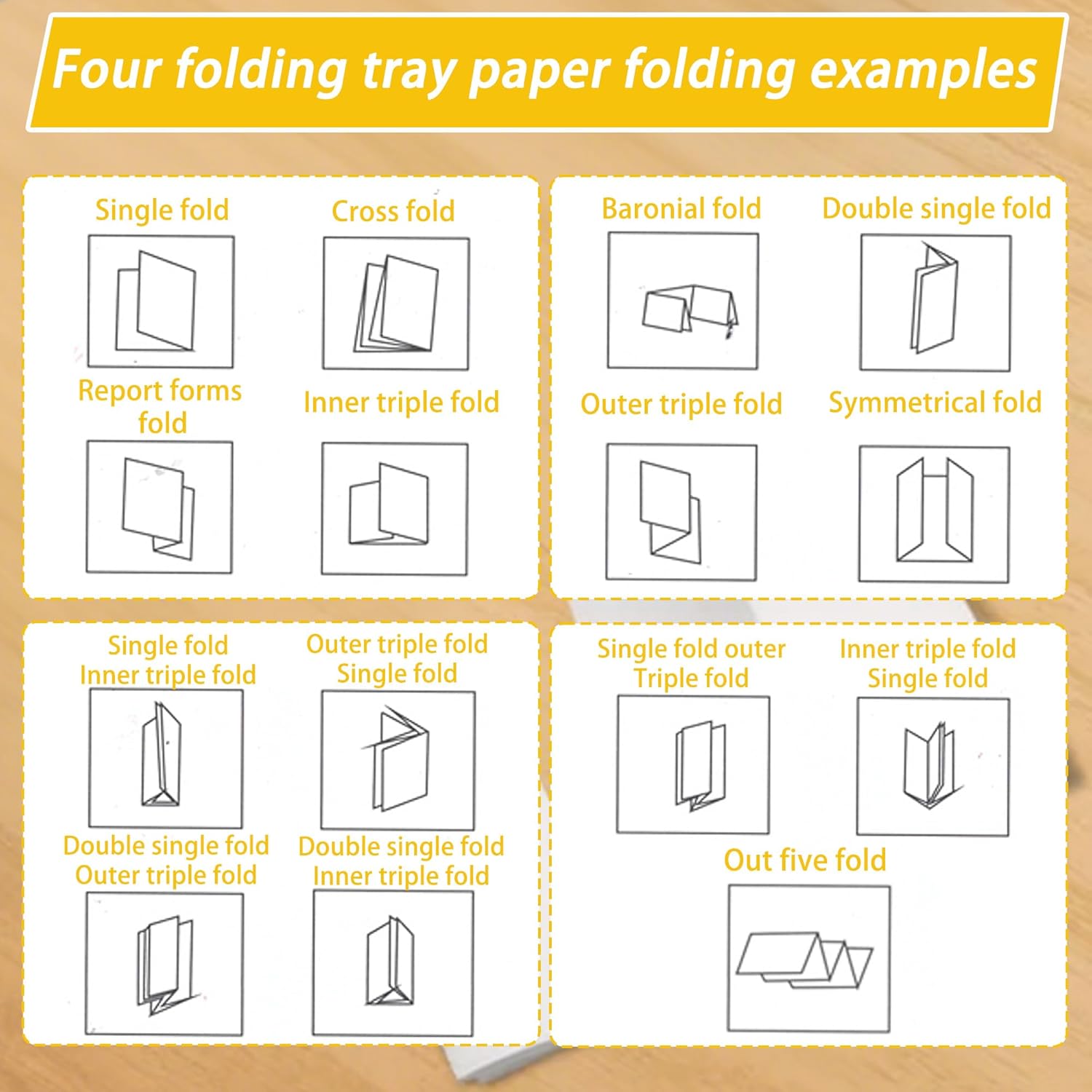 - [WIDE RANGE OF APPLICATION]- The auto folding machine is mainly used to fold paper of different dimensions and different thicknesses in the designated range. This machine has advantages as follows: adjust easily, send paper fluently and separate paper automatically. It can fold business correspondence, booklets, flyers, and manuals. Widely used in office settings such as printing shops, binding factories, enterprises, government offices, universities, hospitals