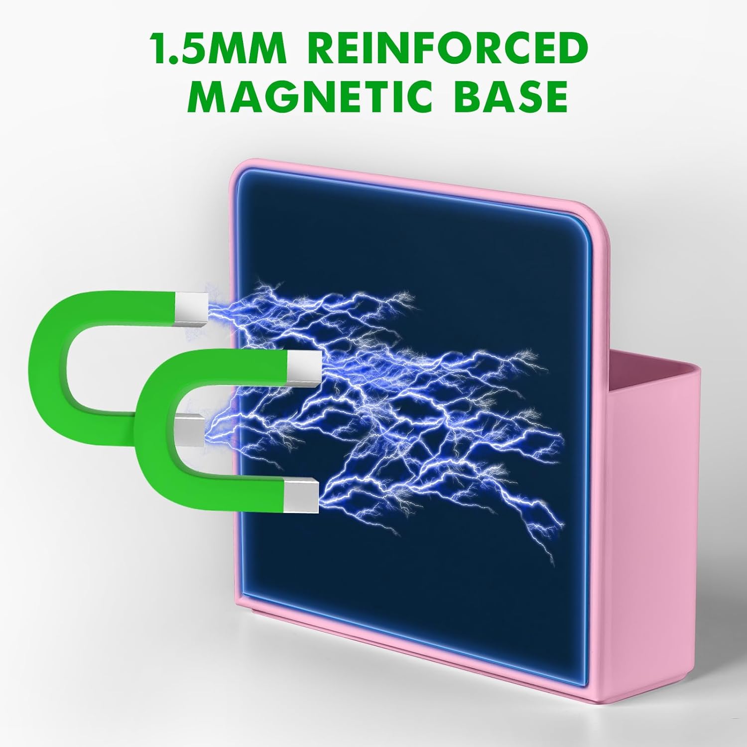 - 🖍️【STRONG MAGNETIC BASE】This dry erase marker holder features a 1.5mm thick rubber magnet on the back, providing enhanced magnetic strength to significantly reduce the risk of slipping and securely adhere to any magnetic surface.