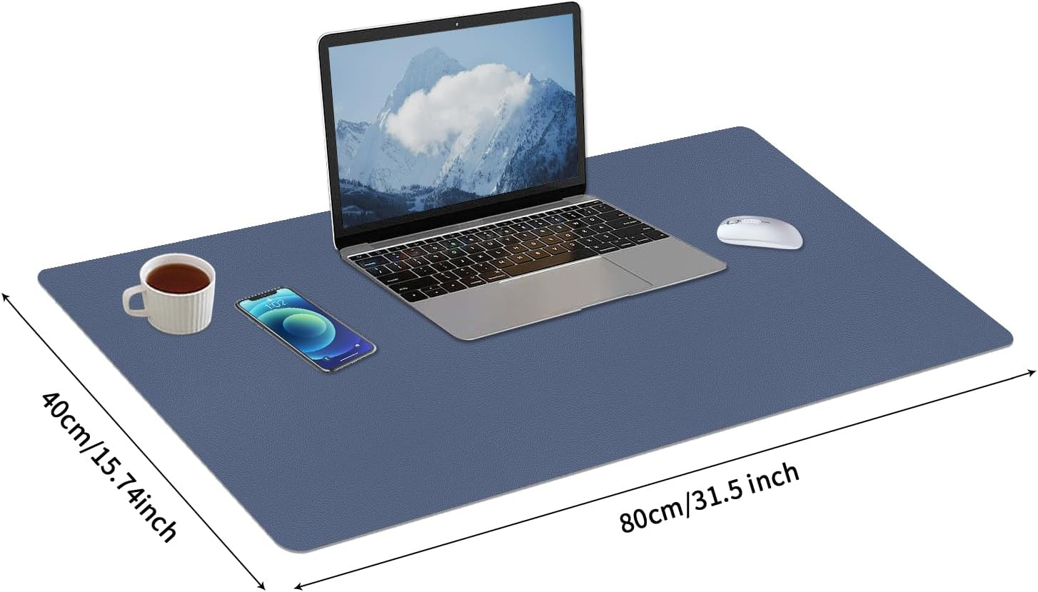 Bloss Grey Blue Desk Mat, Leather Desk Matt for Desktop, Waterproof Large Keyboard Mat, Computer Mat for Office/Home/Decor(31.5 x 15.7 Inches)