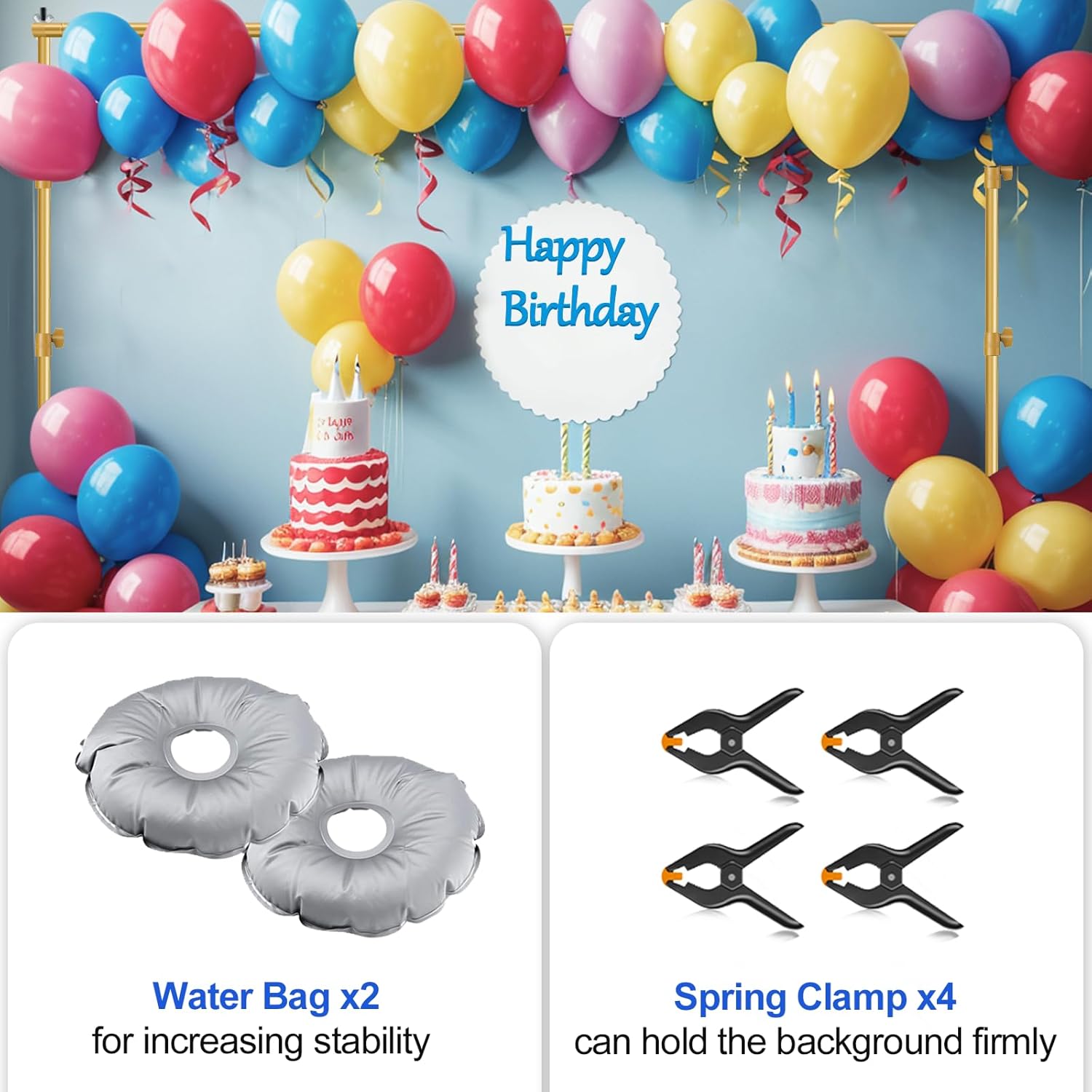 EMART Backdrop Stand, 8.5x10ft Width Adjustable Photography Background Support Poles with Heavy Duty Flat Base, Photo Metal Steel Pipe and Drape Frame Kit for Parties Birthday Wedding - Gold