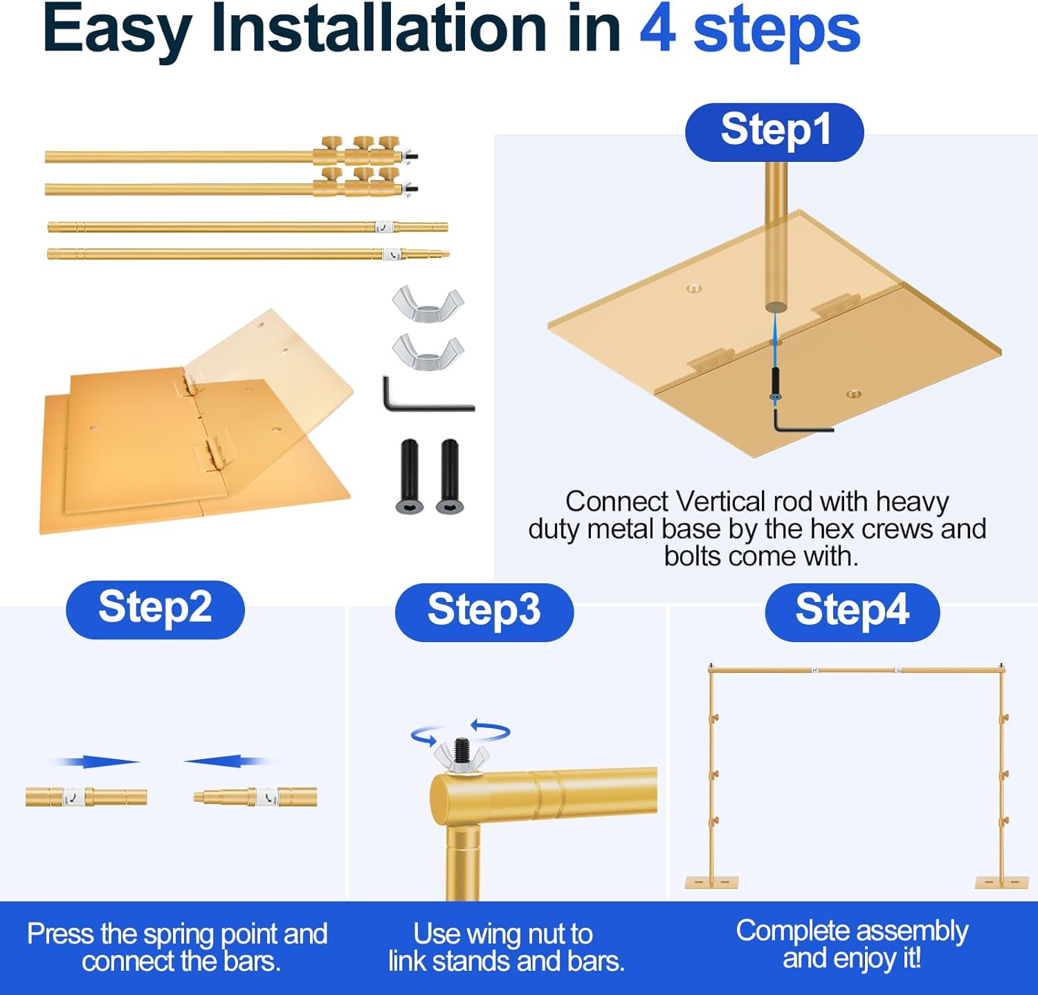 - 【Convenient Assembly】 The metal background support stand is easy to install and can be quickly assembled in a few minutes. Before installing, refer to the instruction manual or installation video on the product page to learn how to complete the installation correctly and quickly