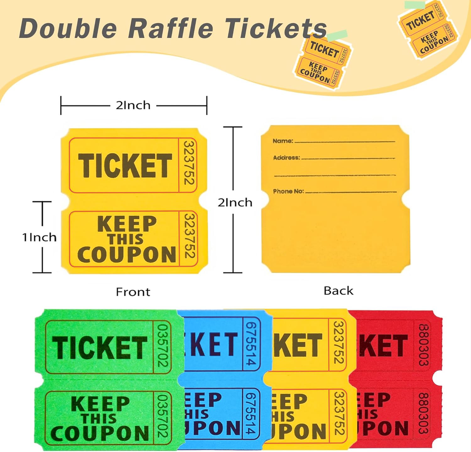 - Bright Colors -- The set contains four bright colors: red, green, blue, and yellow, each color contains 1200 raffle tickets