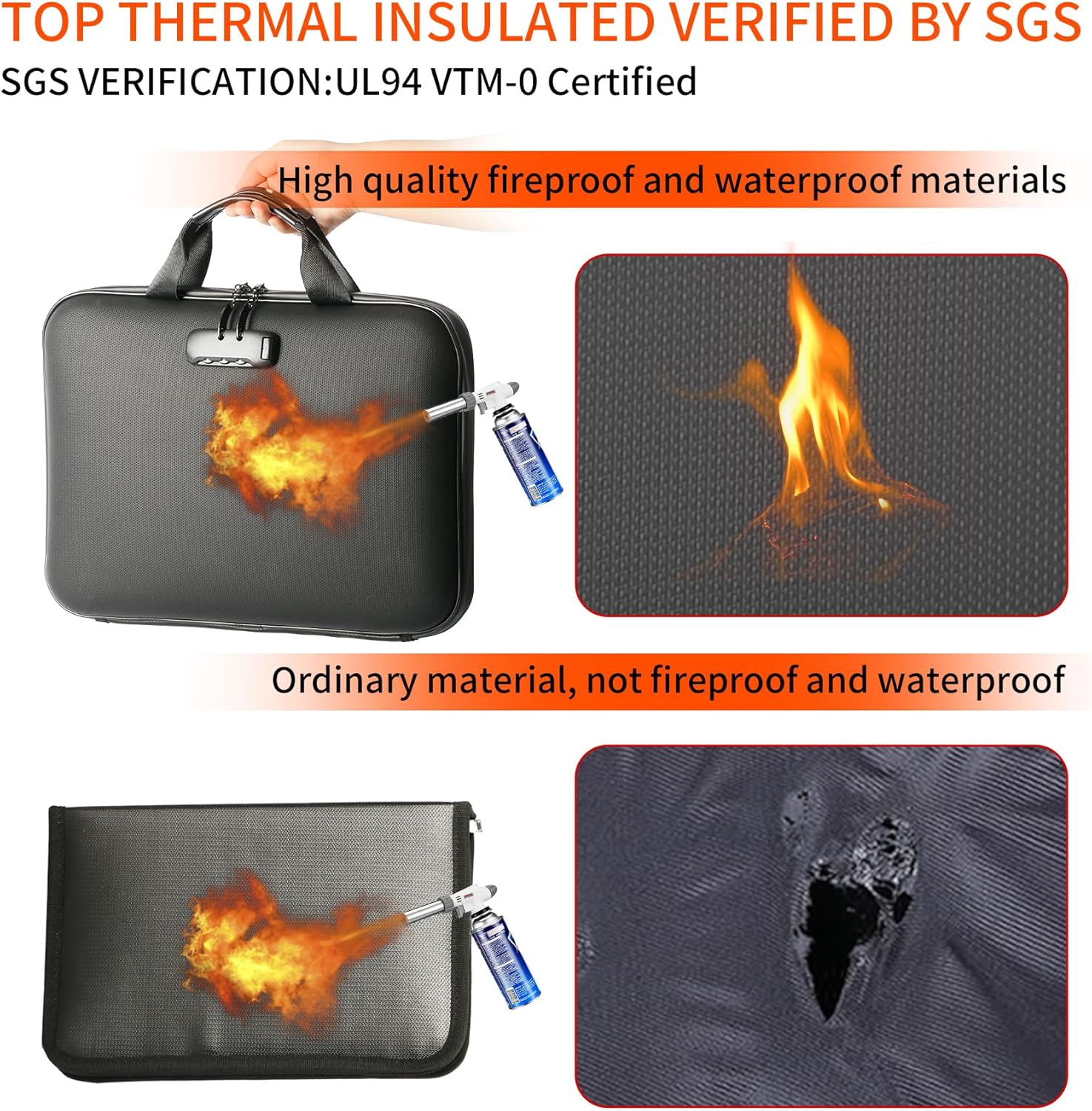 - [5200°F Fireproof & Waterproof Handbag] The Zanoal Hard-Shell Fireproof Organizer Briefcase Protects Valuables With Thickened Silicone-Coated Fireproof Material And Hard-Shell Construction.Capable Of Withstanding High Temperatures Up To 5200°F Passed SGS TEST (UL-94 VTM-0), It Resists Flames, Floods, And Wet Weather. Fits Both Letter And Legal-Size Files Securely.