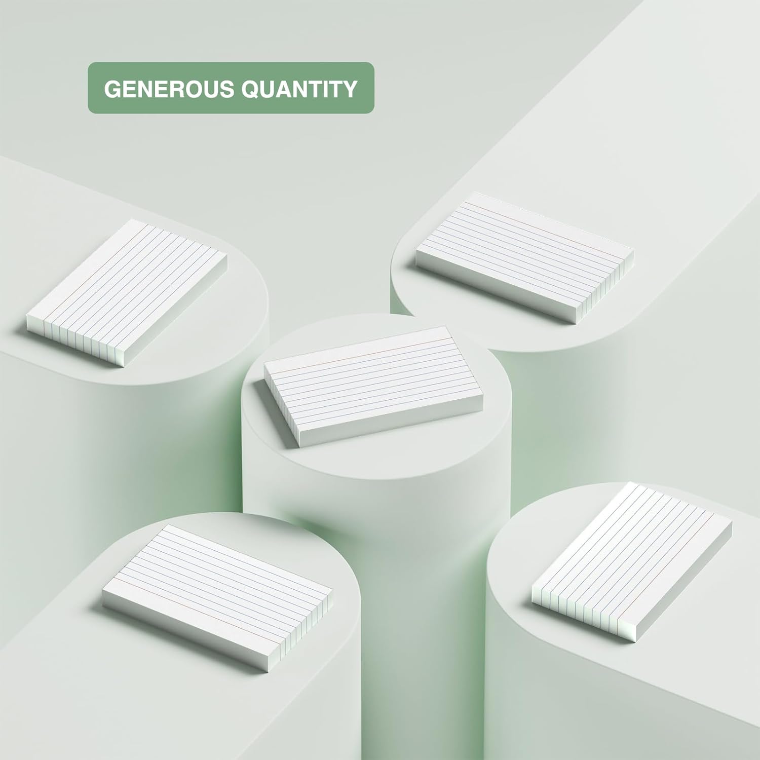 250 Count White Index Cards 3x5 Inch - 180gsm Heavyweight Flash Card (50 Sheets Each), Durable & Portable Note Taking for Students, Teachers, Study Flashcards for Office Home School Supplies