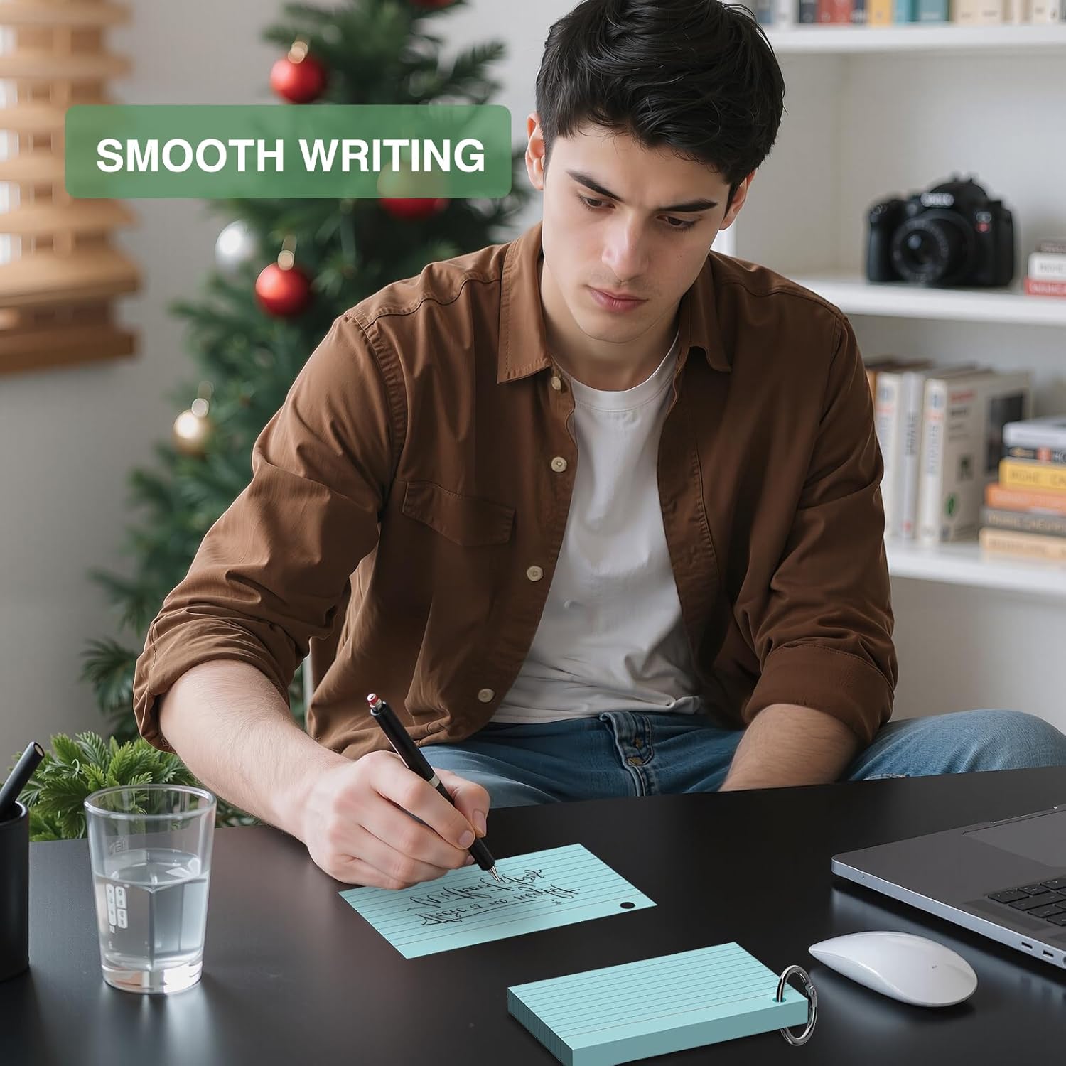 250-Pack Colored Index Cards, 3x5 Inch w/Key Ring – 180gsm Heavyweight Flashcards – 5 Vibrant Colors Flash Cards (White Pink Purple Blue Yellow) – Perfect for Study, Notes & Memory, Students School