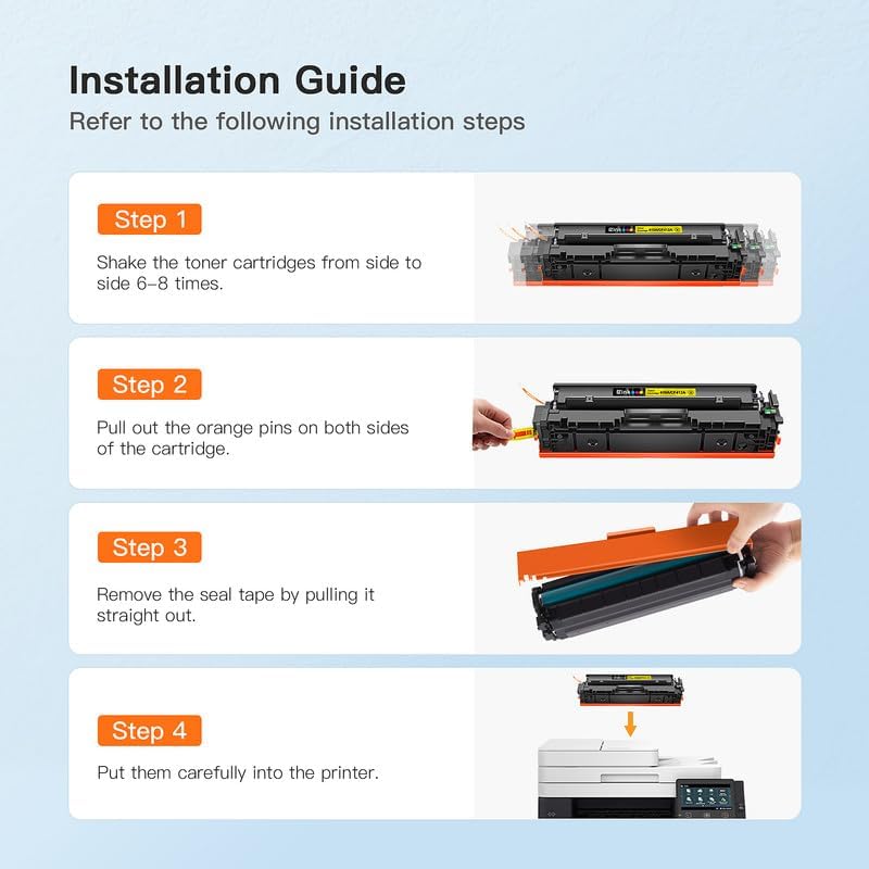 - With Chip: These E-Z Ink 410A toner cartridges for hp 410a toner cartridges 4 pack are already installed with chips, No need to transfer and install original 410A or 410X toner's chip to them